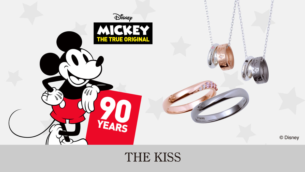 ディズニーの人気キャラクターがデザインされた「THE KISS」のディズニーコレクションにミッキーマウス90周年記念限定のペアジュエリーが登場!