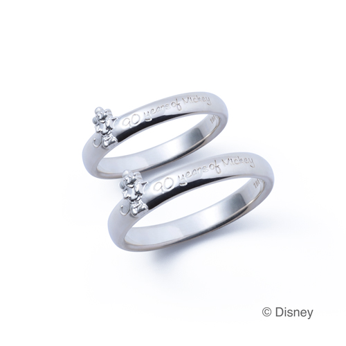 リングの表面にミッキーのフェイスが刻印された「ミッキー90周年」限定ペアリング。