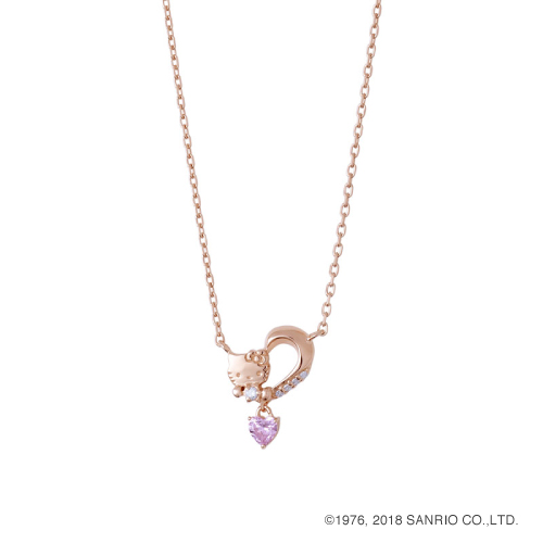 ハローキティが大切にダイヤモンドを包み込んでいる、やさしいハートモチーフのネックレス。