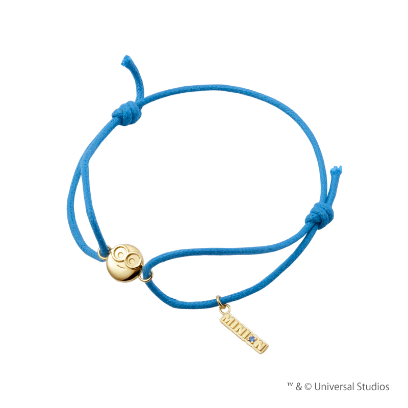 ボブのフェイスモチーフとオーバーオールをイメージしたブルーのコードのブレスレット。