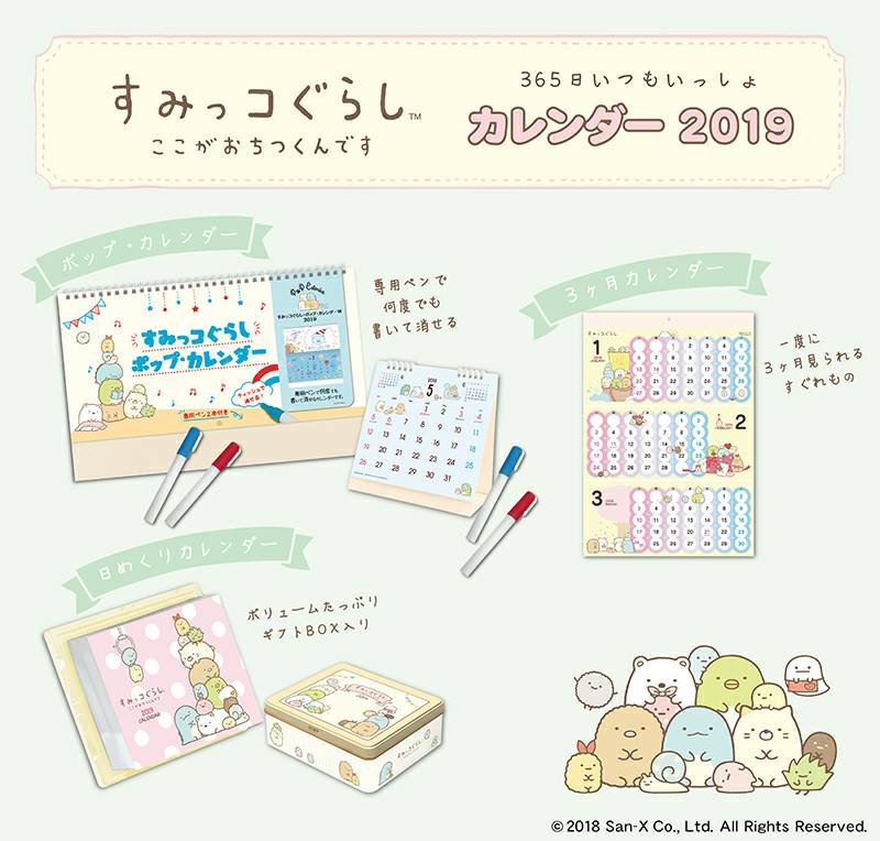リラックマとすみっコぐらしの2019年版カレンダーが登場!