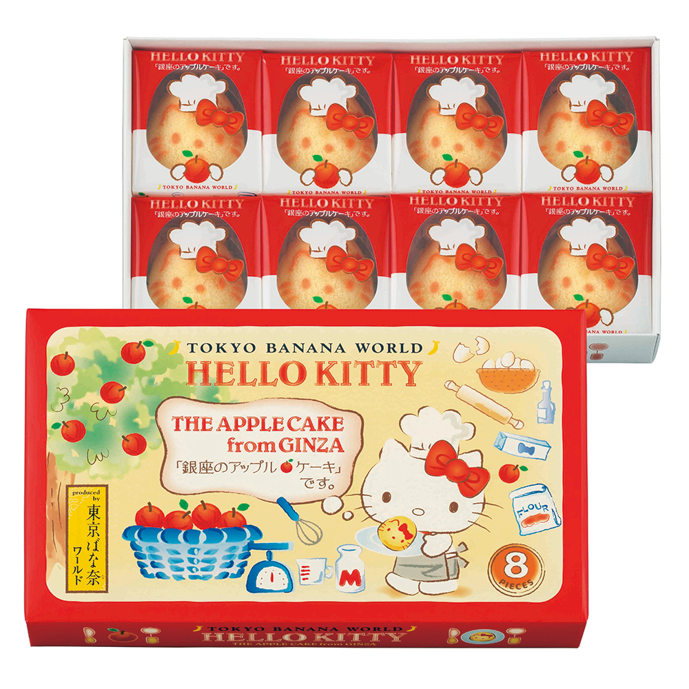 『「銀座のアップルケーキ」です。』には、東京ばな奈ワールドの技とハローキティらしいリンゴの魅力がいっぱいつまっています。