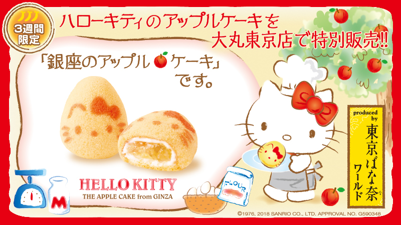 東京みやげブランド「東京ばな奈ワールド」とサンリオの人気キャラクター「ハローキティ」とのコラボ商品『「銀座のアップルケーキ」です。』が、2018年7月25日(水)~8月15日(水)に大丸東京店1階の特設会場にて発売!