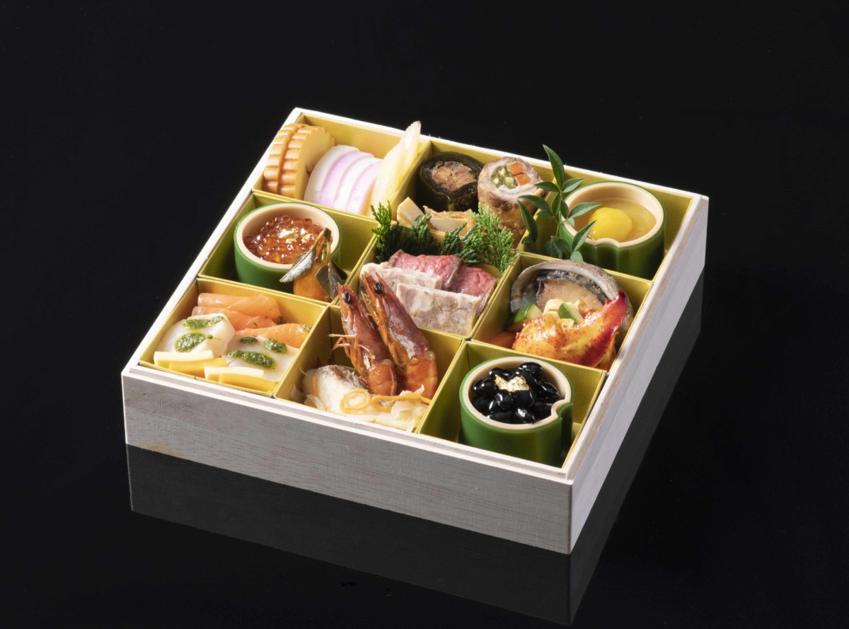 日本の伝統的な正月料理をはじめ、日本三大和牛の一つ「神戸ビーフ」を使ったローストビーフなどの西洋料理や、パティシエがひとつひとつ丁寧に作り上げるスイーツを三段重に盛り込んであります。