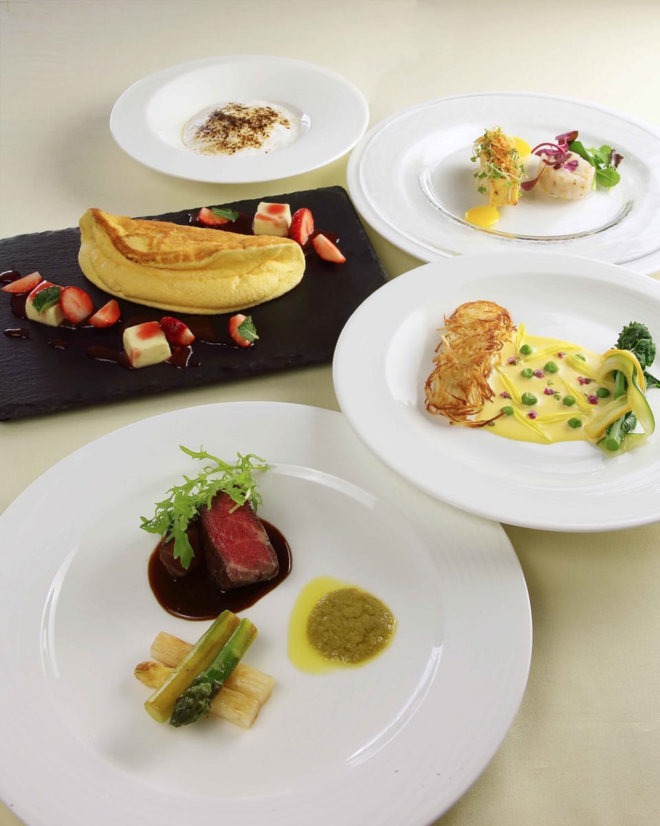 春に旬を迎える食材をふんだんに使用した、前菜から魚・肉料理、デザートまでをじっくり楽しめるフルコース。