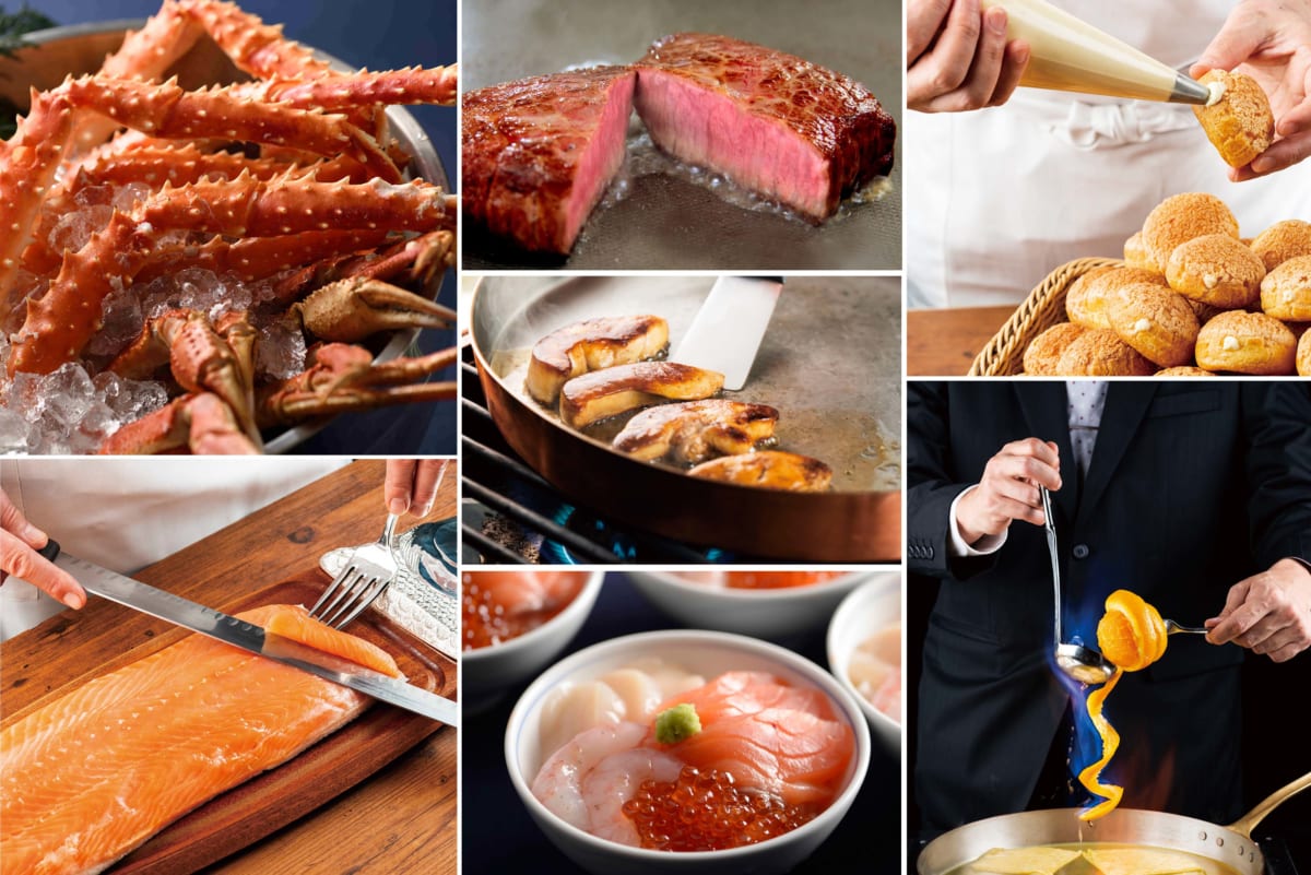 タラバ蟹とズワイ蟹の食べ比べをはじめ、松阪牛のステーキやフォアグラのポワレなど、シェフが調理実演するメニューも多数登場します!