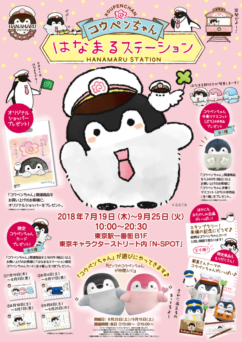 東京キャラクターストリートの「コウペンちゃん はなまるステーション」は、2018年7月19日(木)~9月25日(火)までの期間限定で開催です☆
