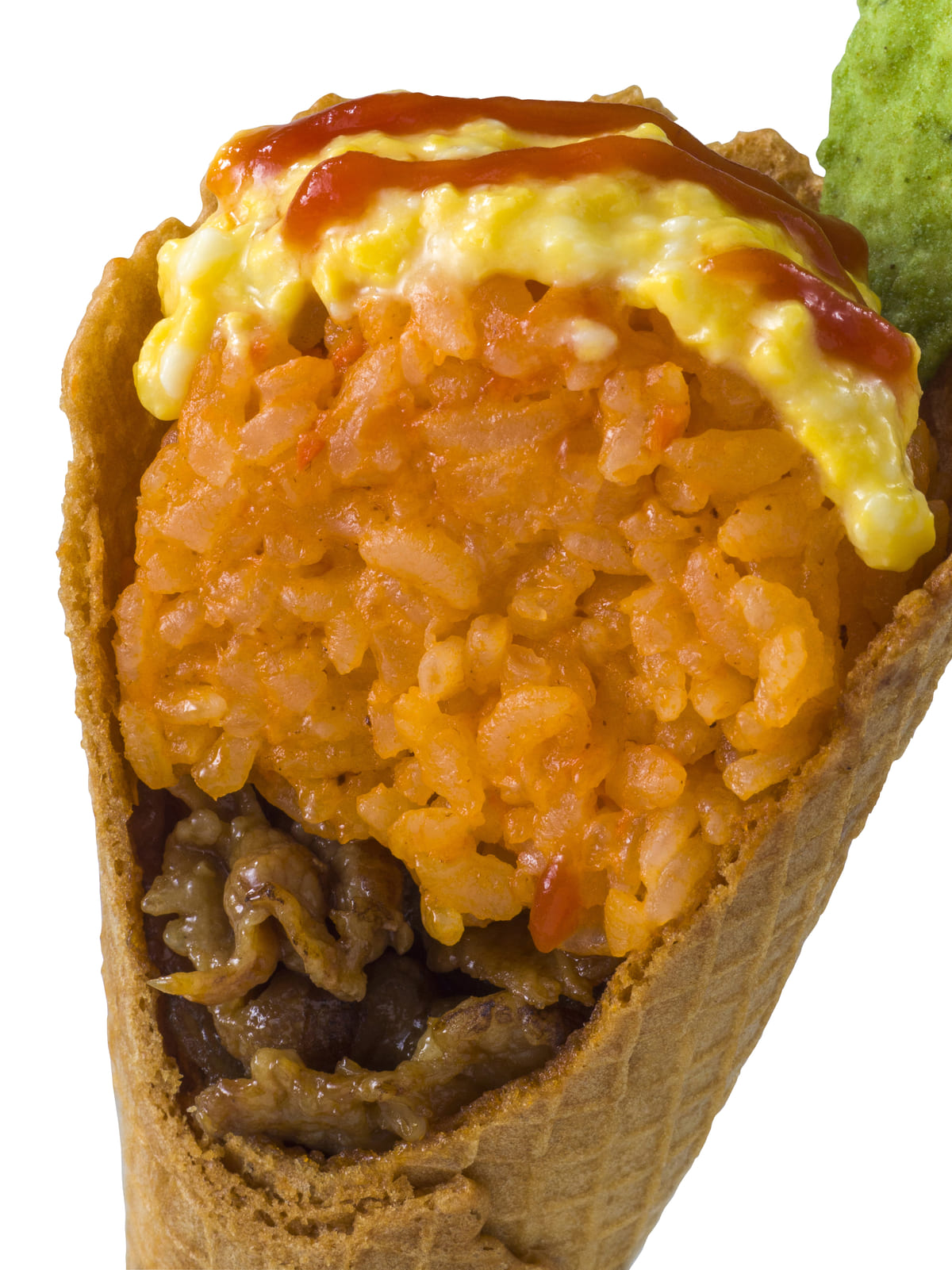 アイスクリームのような見た目ですが、中には牛肉とチキンライスがたっぷり!