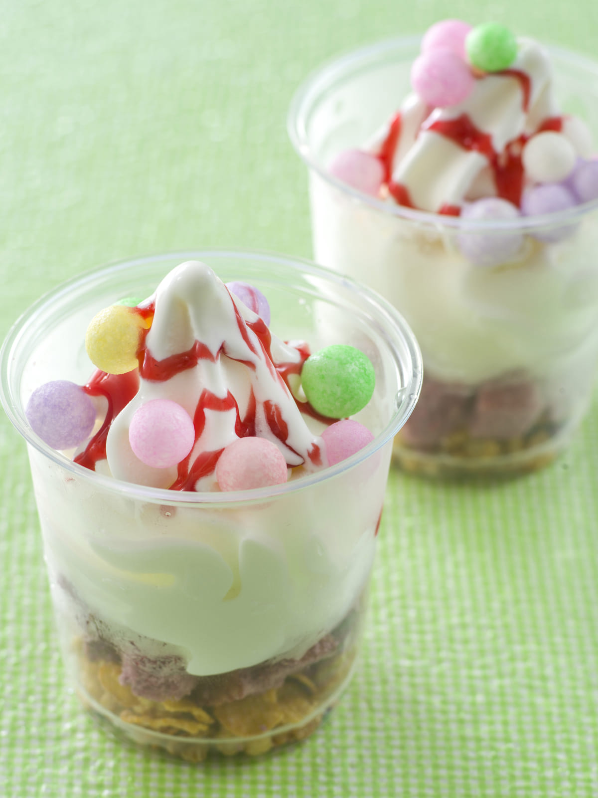なめらかなソフトクリームの上には、パステルカラーのトッピングがいっぱい!