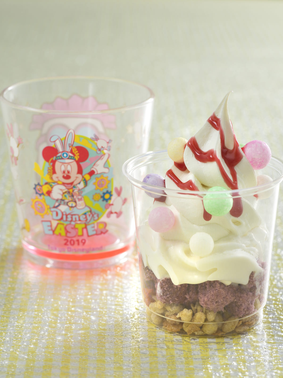 東京ディズニーランド“ディズニー・イースター2019”のデザイン入りカップがついたスイーツ。