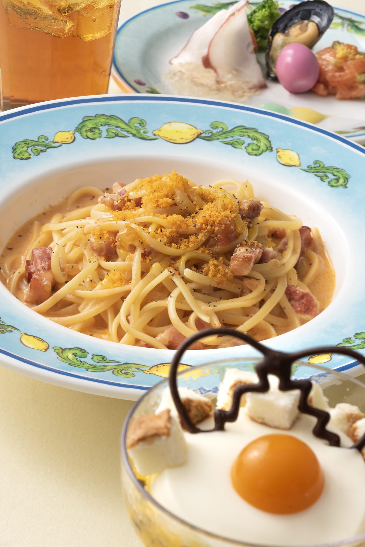 - リングイネ、トマトのカルボナーラ