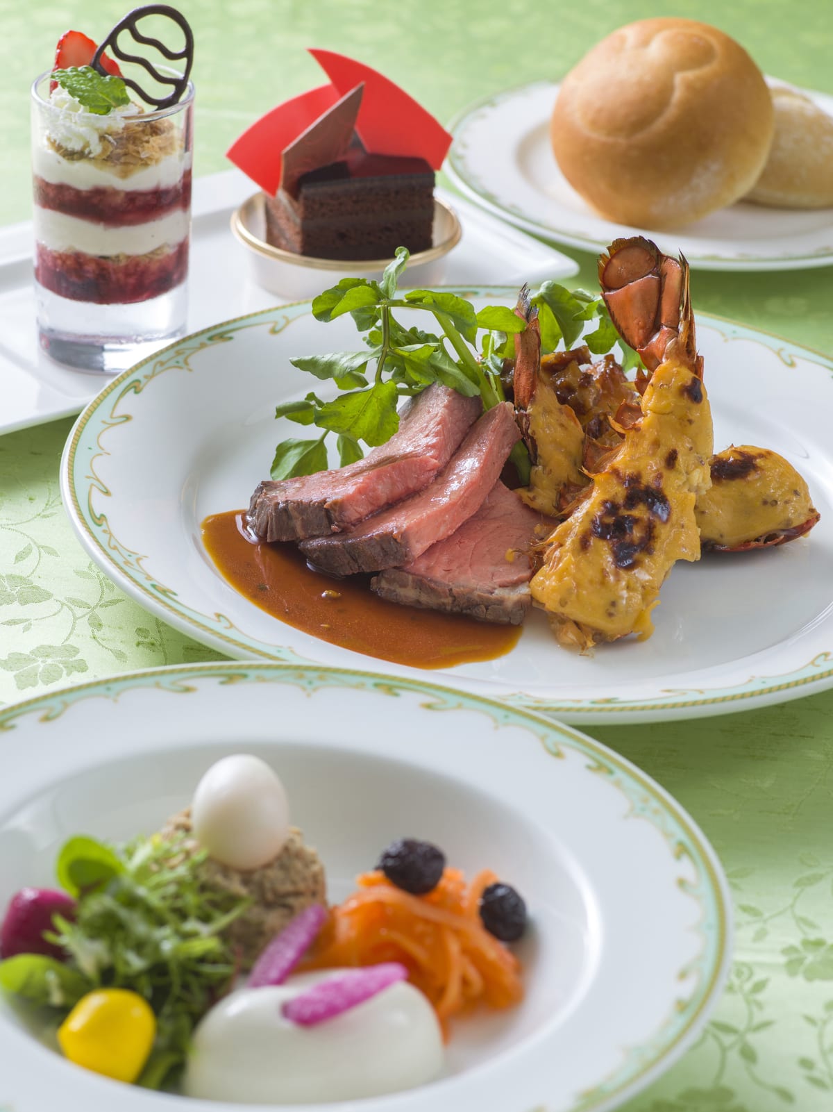 メイン料理に「オマール海老のオーブン焼き」をくわえたセット(4300円)も提供されます。