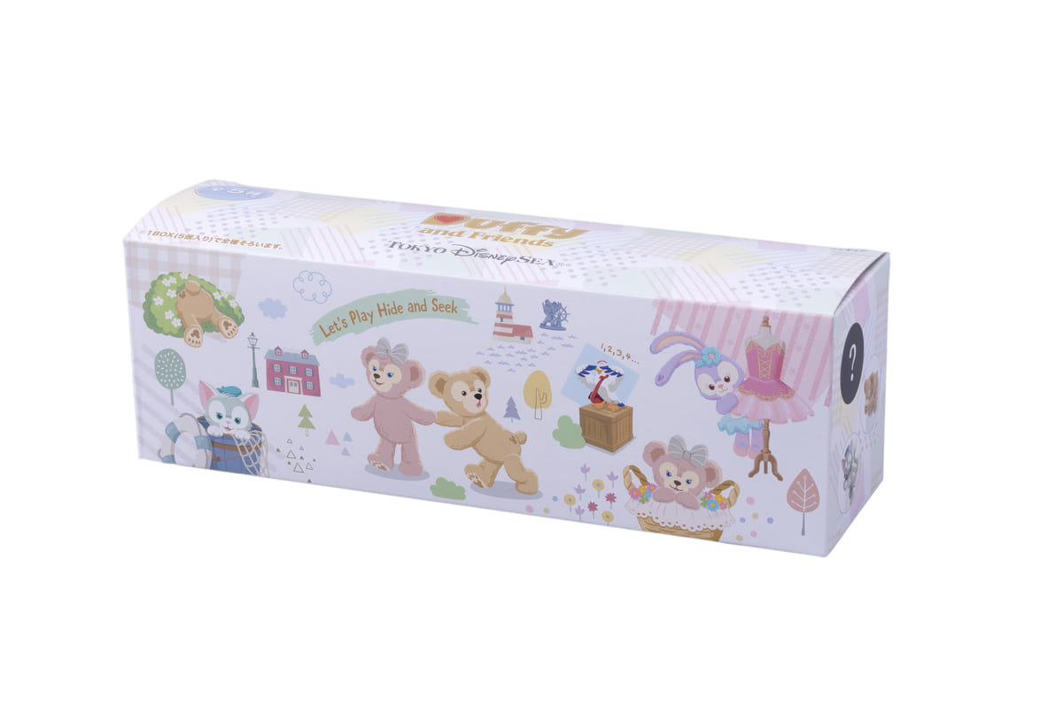 裏側は「ダッフィー」「シェリーメイ」「ジェラトーニ」「ステラ・ルー」がかわいく隠れている姿、