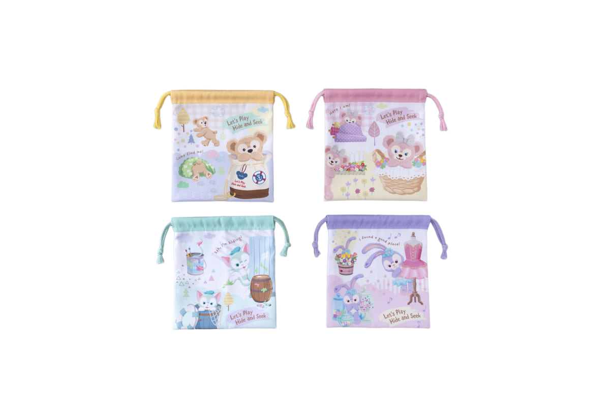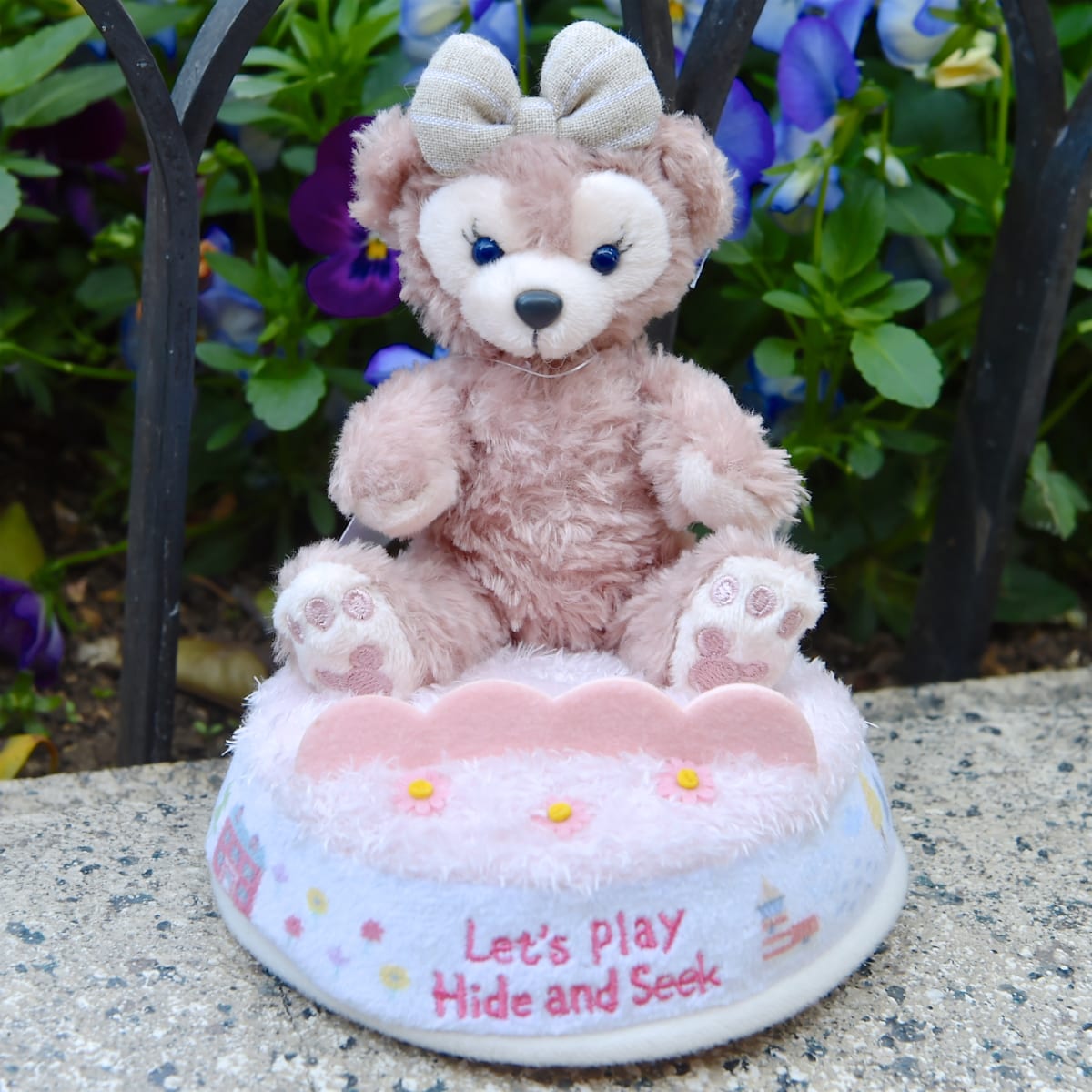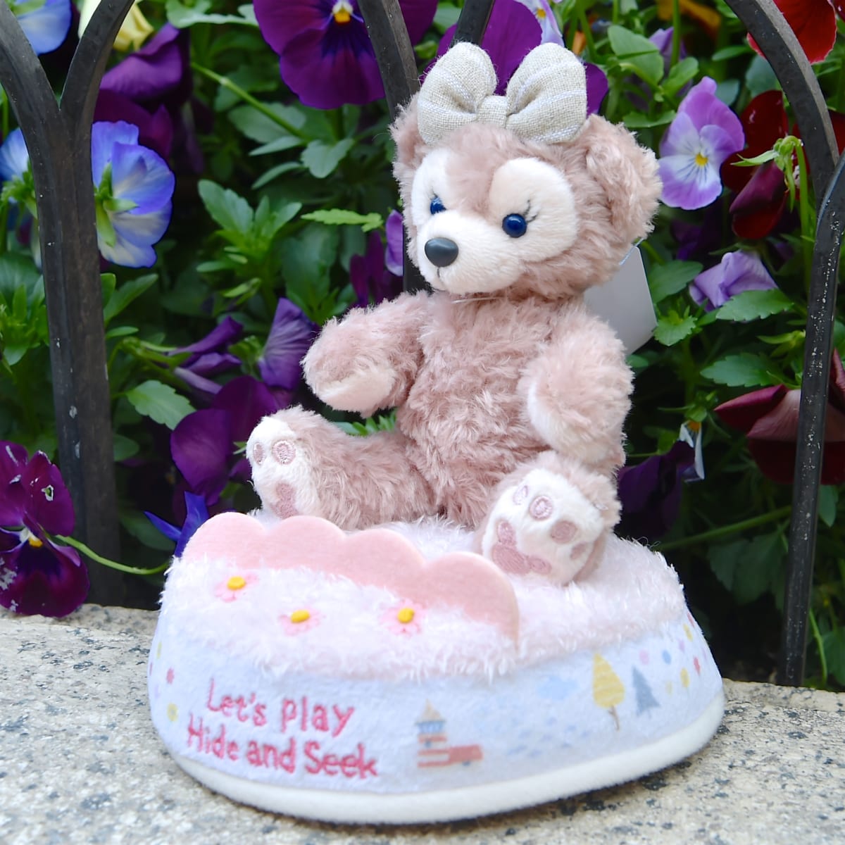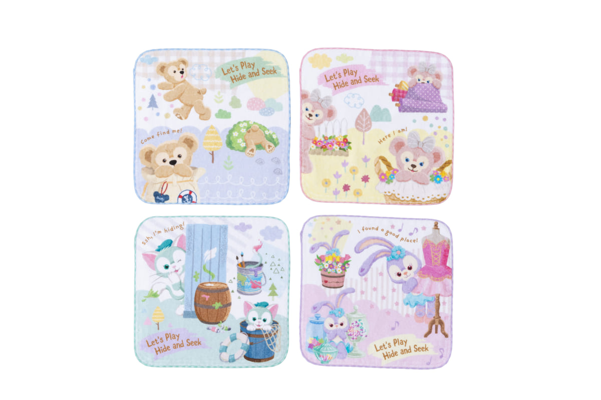 かくれんぼを楽しむダッフィー、シェリーメイ、ジェラトーニ、ステラ・ルーのデザインです。