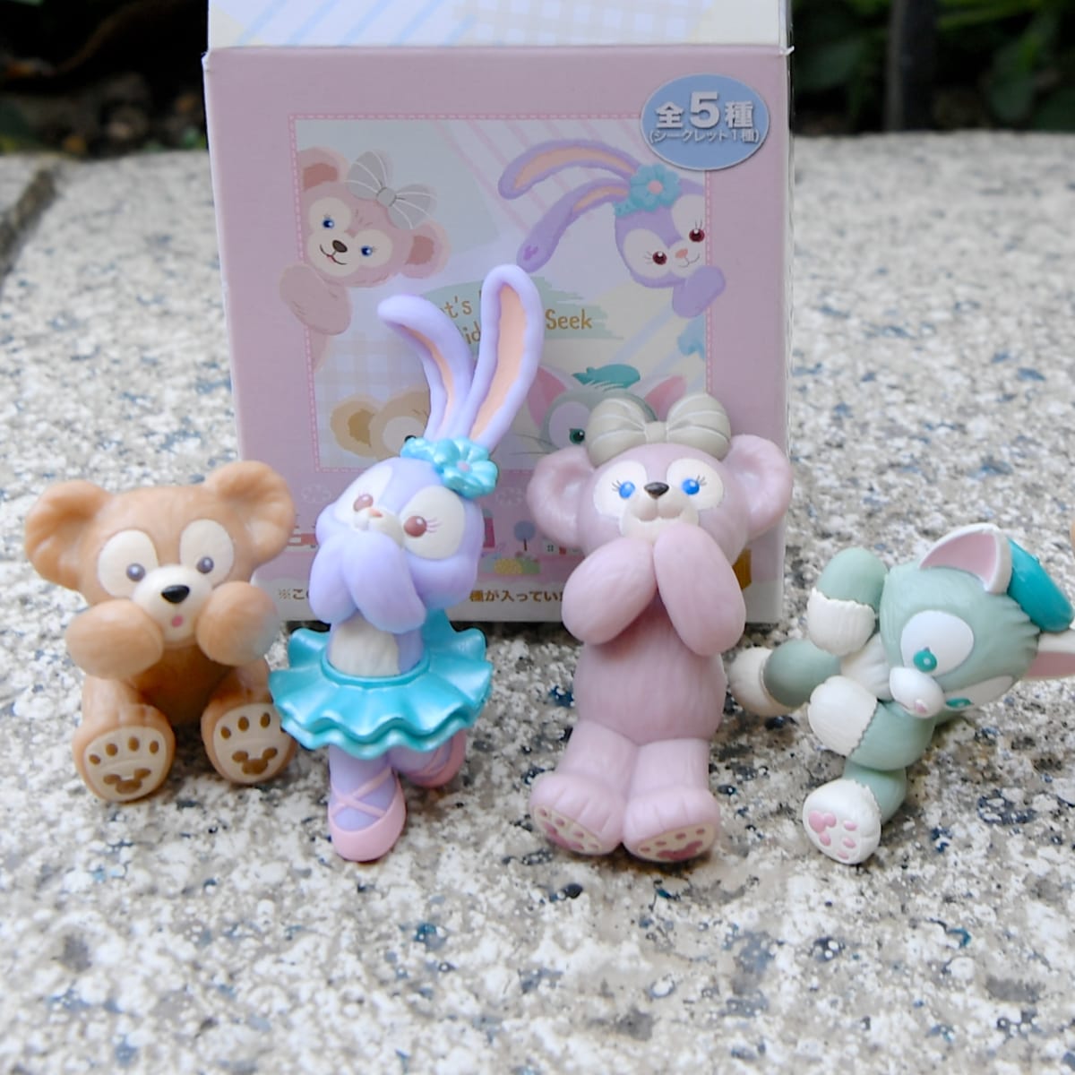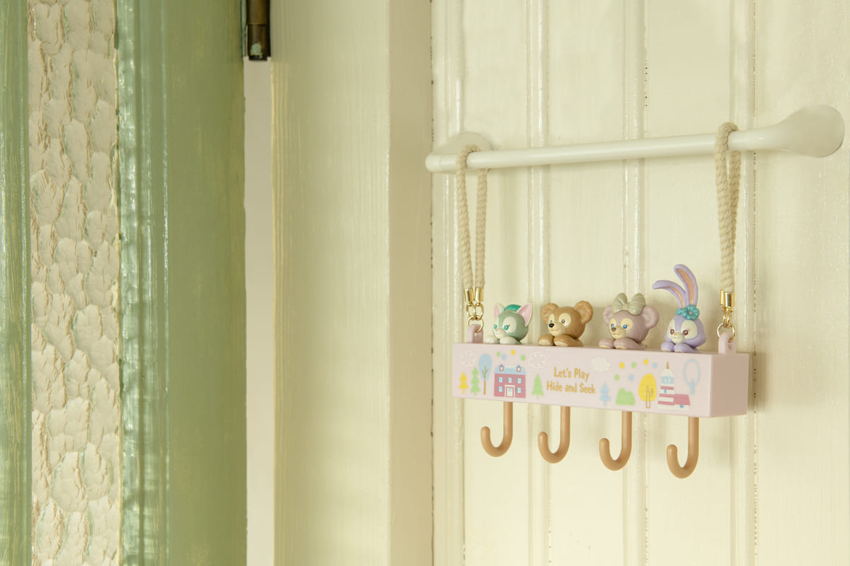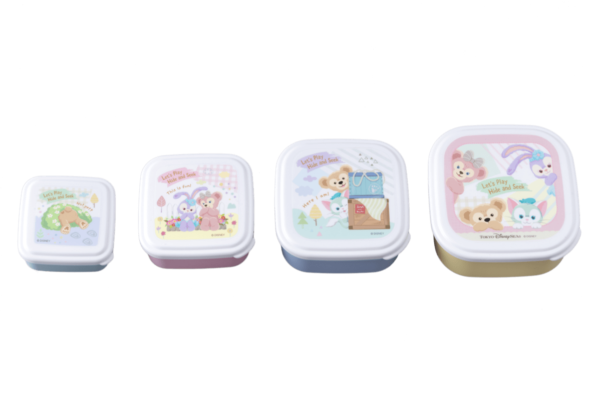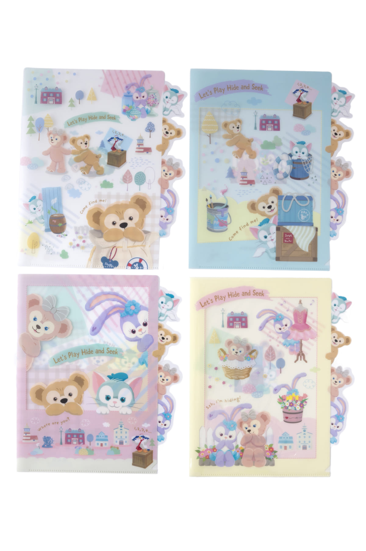 かくれんぼを楽しむダッフィー、シェリーメイ、ジェラトーニ、ステラ・ルーのデザインです。