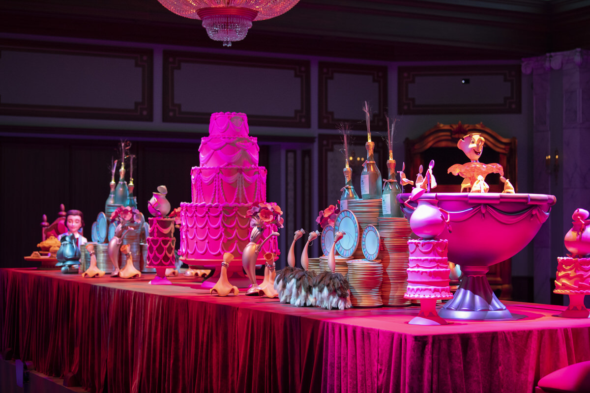 雪に覆われた庭でベルと野獣の心の距離を縮めていくシーンでは氷の上を滑るようにと、シーンに合わせて感情豊かに、ゲストは魔法に満ちたものがたりの世界にどんどん引き込まれていきます。