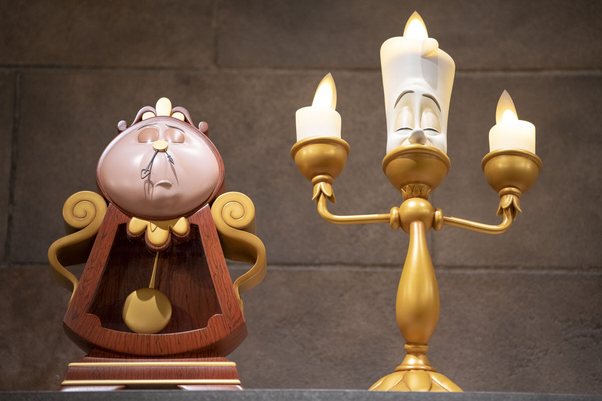 暖炉の上にはルミエールとコグスワースの姿も。