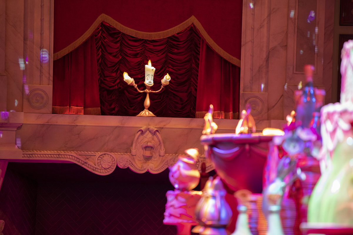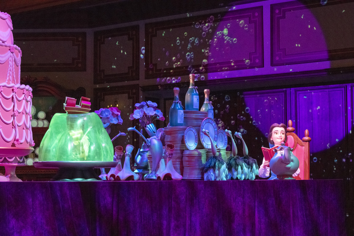 ディズニープリンセス ベルのほか、野獣、ルミエール、コグスワース、ポット夫人、チップなど数々のキャラクターが登場するアトラクション。