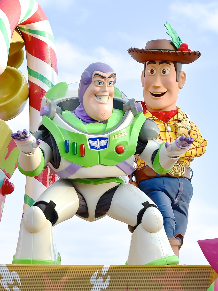 ディズニー/ピクサー映画『トイ・ストーリー』のウッディ、ジェシー、バズ・ライトイヤー、ブルズアイがおもちゃ箱をイメージしたフロートで登場します。