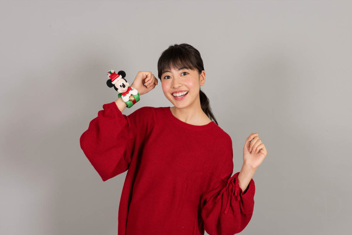 赤い帽子やふわふわの白いファーがクリスマス気分を盛り上げてくれるキュートな衣装を着ています。