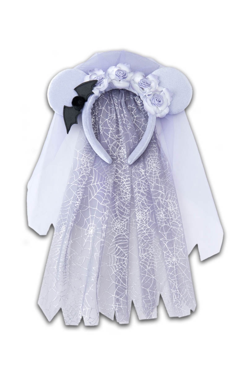 お花やコウモリがあしらわれたパープルの「カチューシャ」は、ベール付きで後ろ姿も可愛い♪