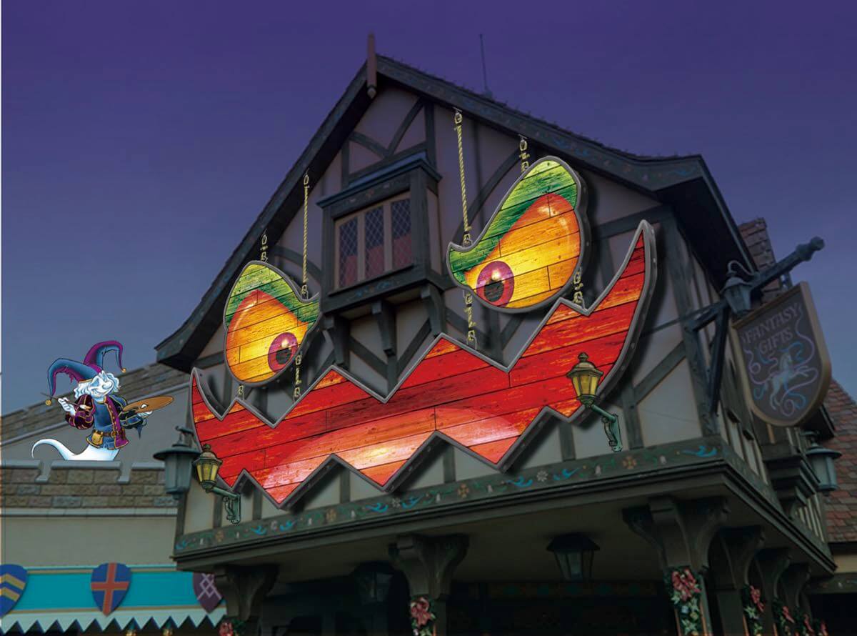 ファンタジーランドでは、まるで建物が生きているかのように魂の宿った様子を表現しようと、ゴーストたちが飾り付けをしています。