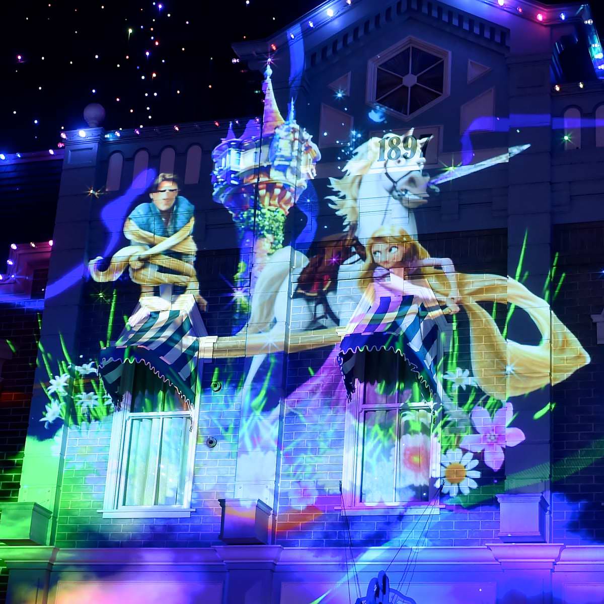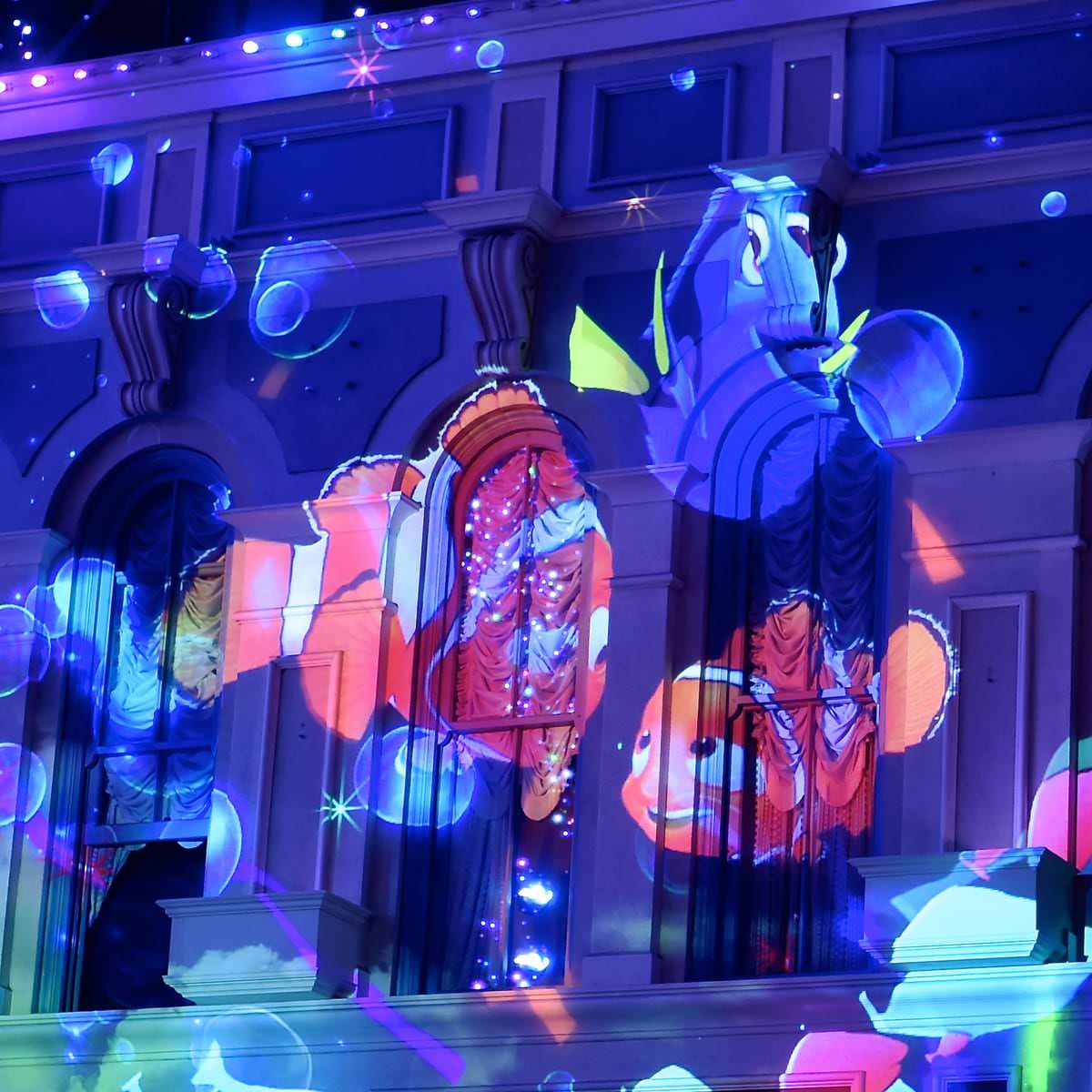 音楽と光にあわせ、たくさんのキャラクターが次々に登場する華やかな演出は必見です!