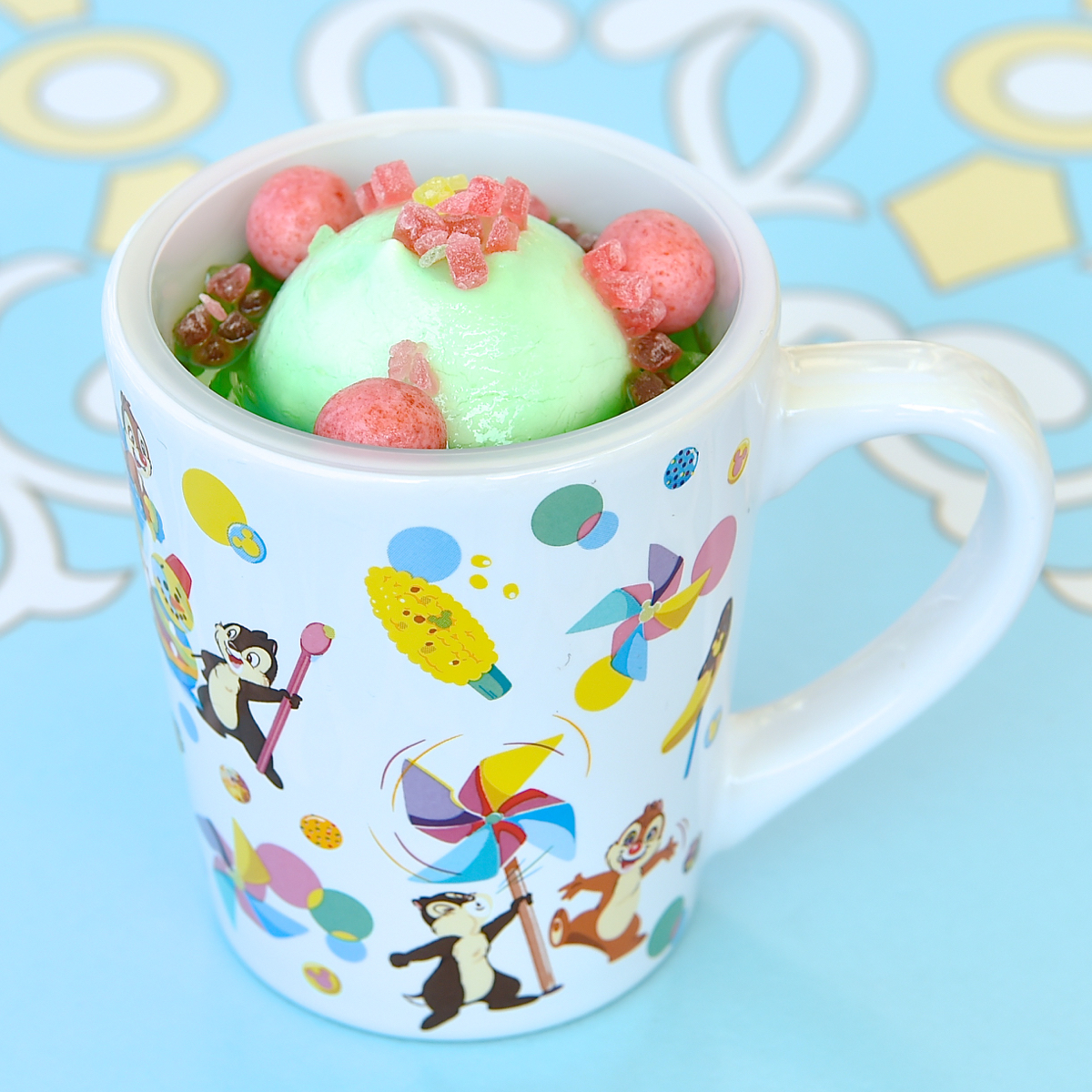 カラフルなかき氷からちょこんと顔を覗かせるチップ&デールが可愛さ満点♪