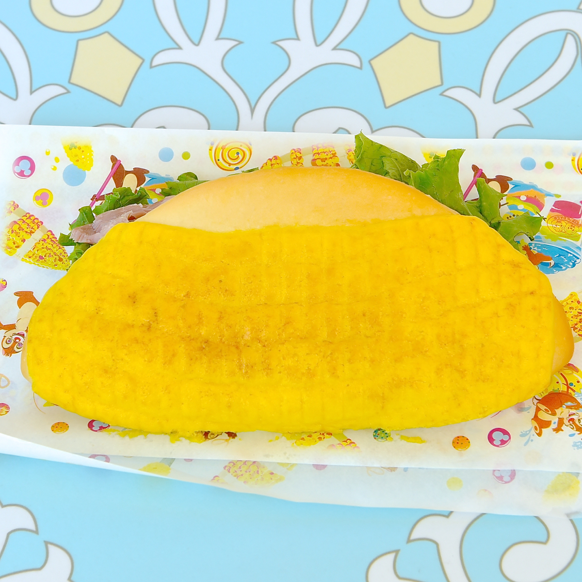焼きとうもろこしパンのサンドは包装紙も“ディズニー夏祭り2018”デザイン。