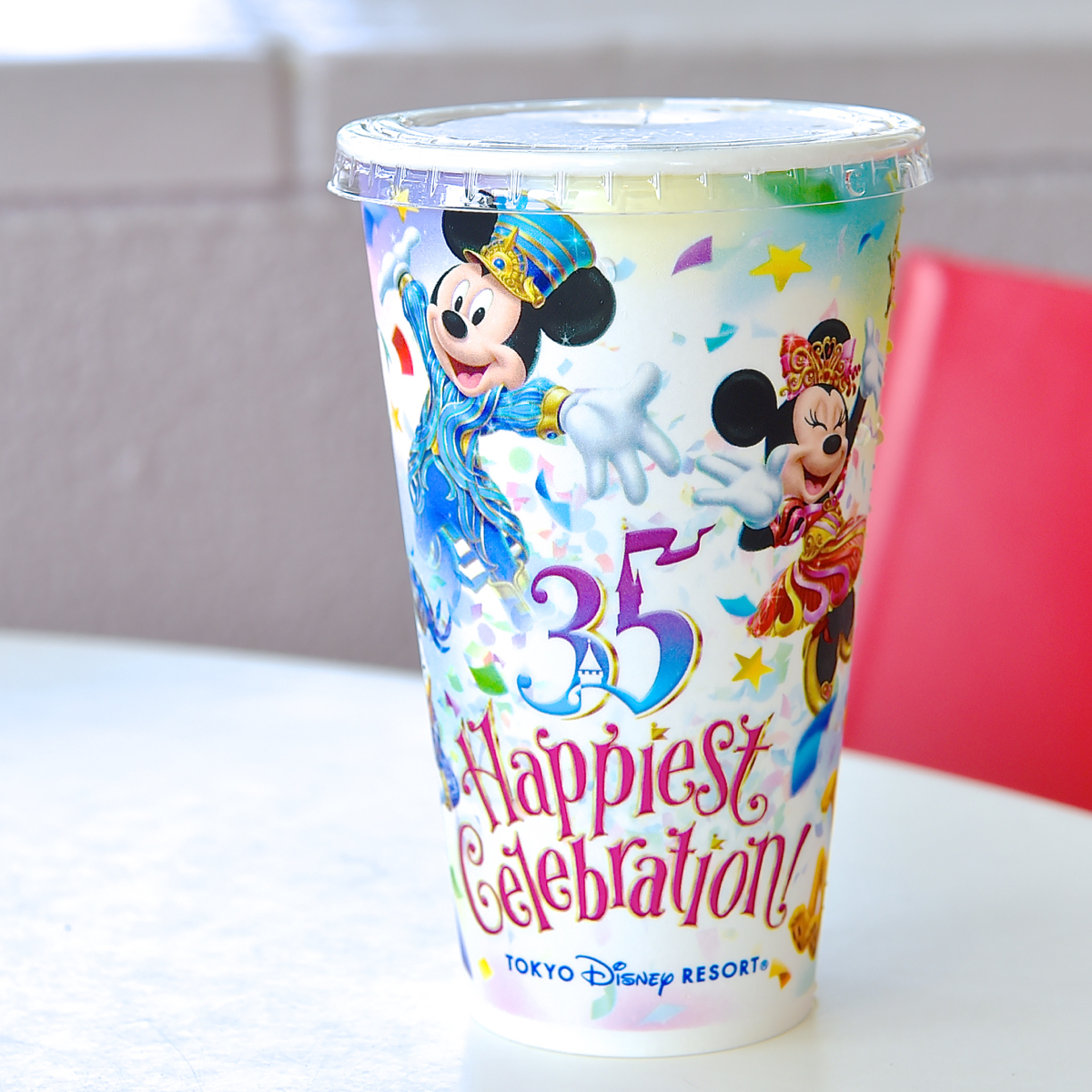 裏側は“ディズニー夏祭り2018”のロゴマークと、水しぶきのようにアレンジされた35周年のマークがデザインされています。
