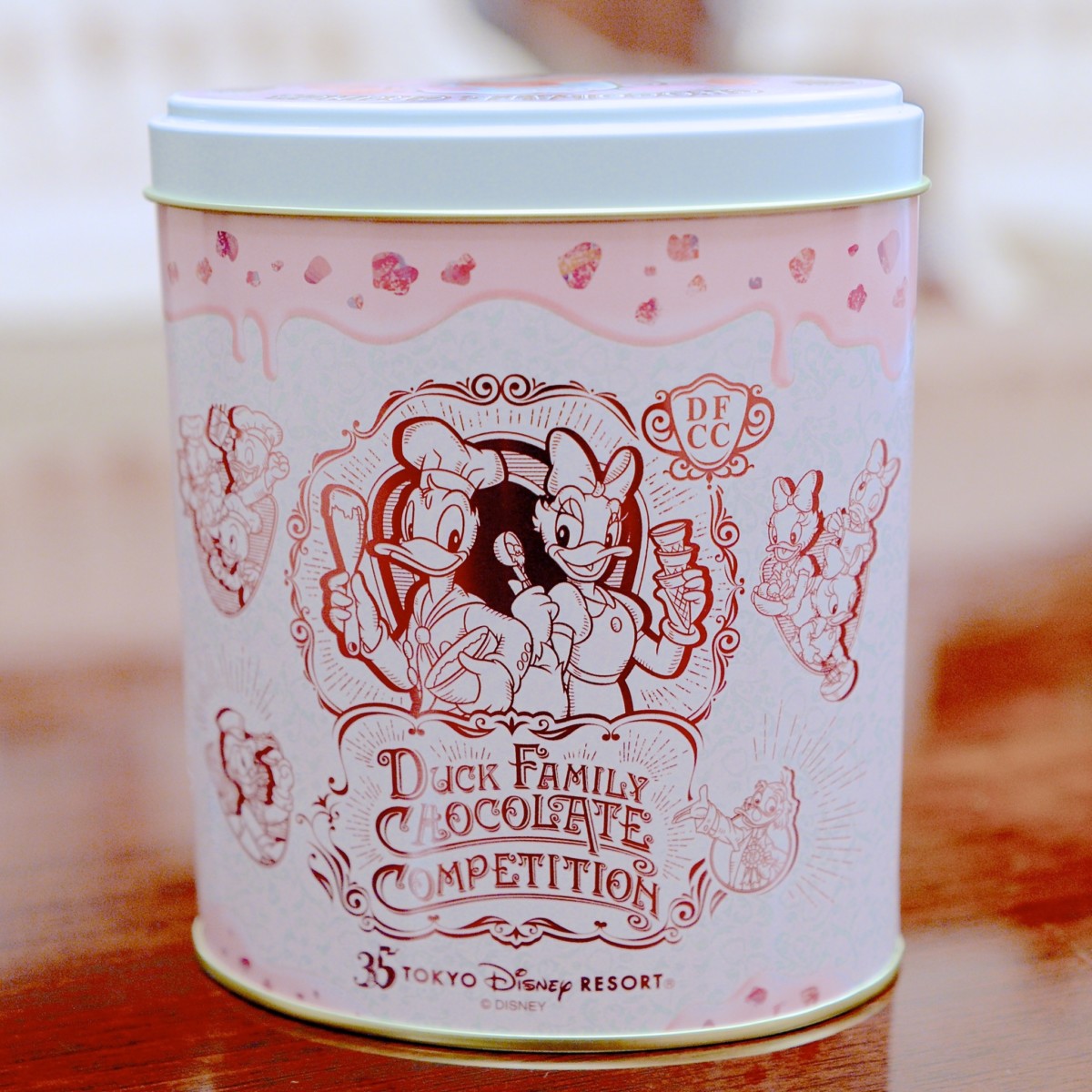 チョコレート作りを満喫しているドナルドのデザインと、期間限定デザイン缶の2種類から選べます。
