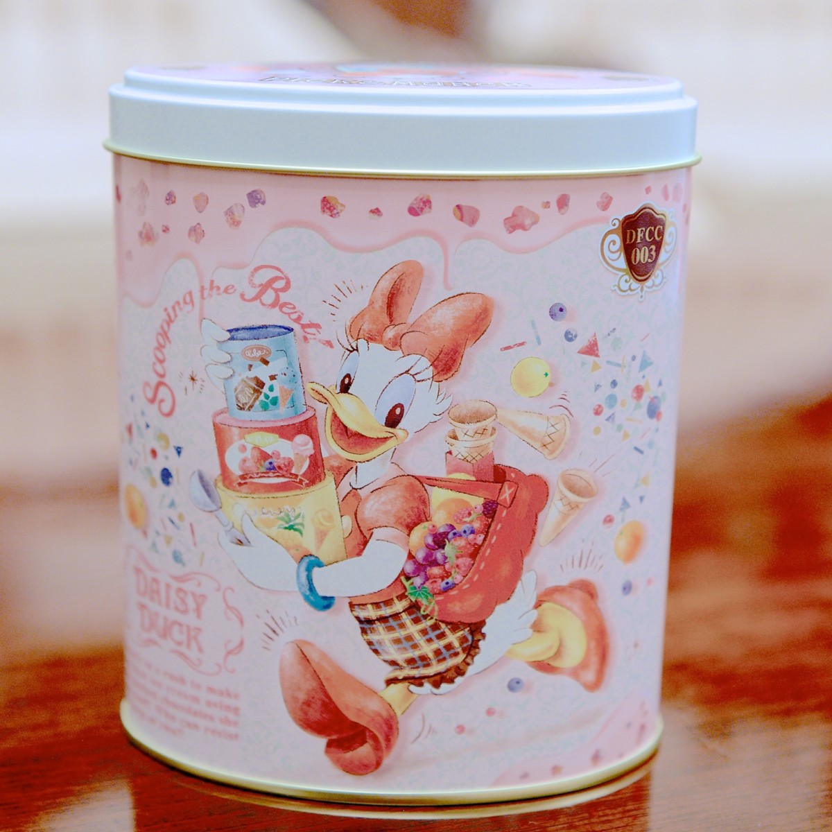 7月8日から9月2日の期間は、シックなカラーでデイジーをイメージした「ダブルベリー」と、東京ディズニーリゾート30周年(2013年)の復刻フレーバー「レモン」をくわえた計6種類のフレーバーから好きなチョコレートクランチを18粒まで選んで缶に詰めていきます。