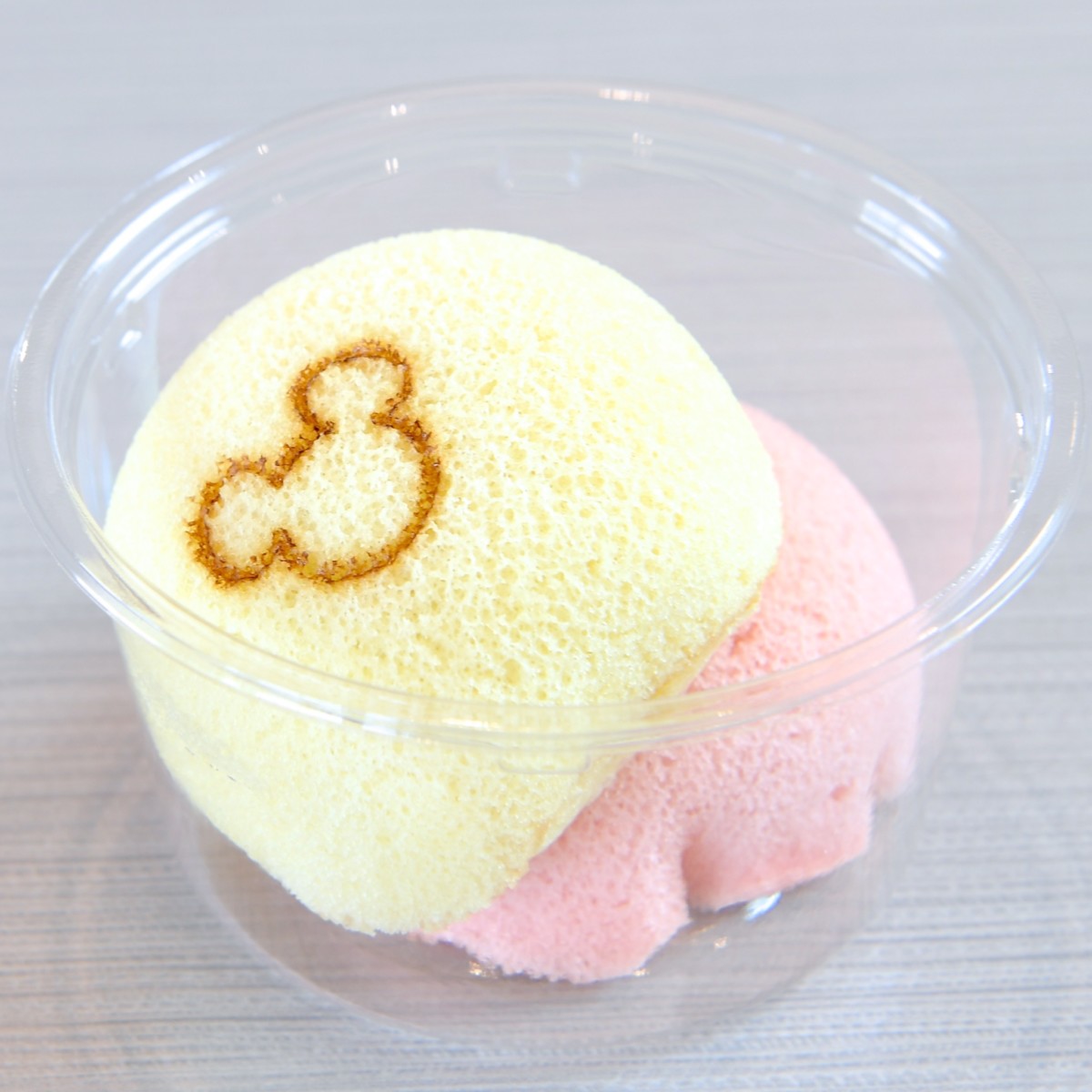 ミッキーとミニーの焼印がかわいらしいカスタードケーキ。