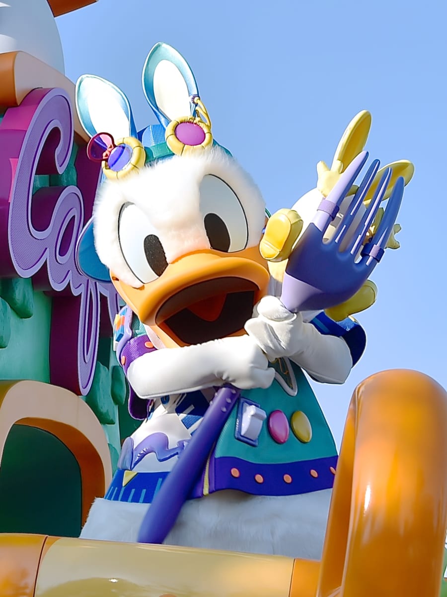 イースターのスペシャルメニューを提供するカフェをイメージしたフロートに乗って登場するのは「ドナルドダック」