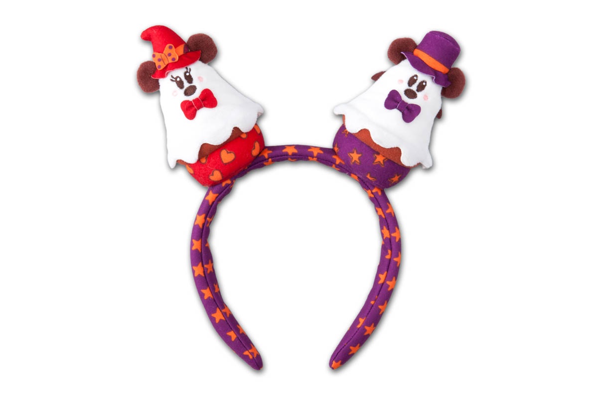 カップケーキモチーフのおばけに扮したミッキーとミニーが乗っている「カチューシャ」