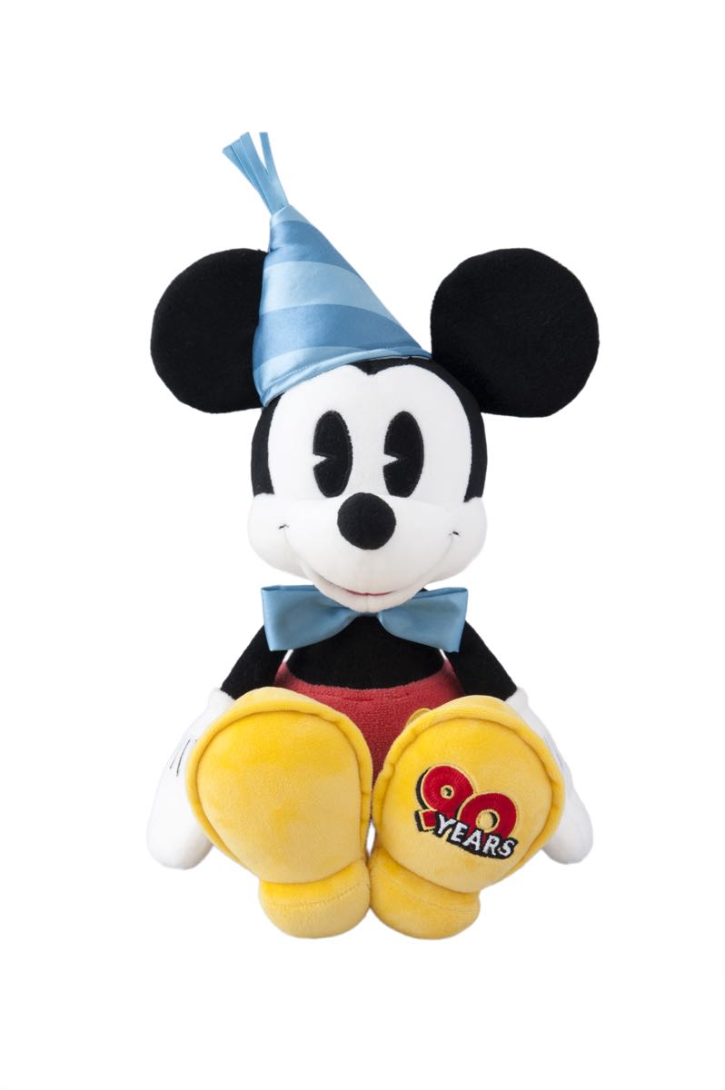あわせて、スクリーンデビュー90周年をお祝いする蝶ネクタイと帽子を身に付けたミッキーマウスがデザインされたぬいぐるみやマグも販売します。