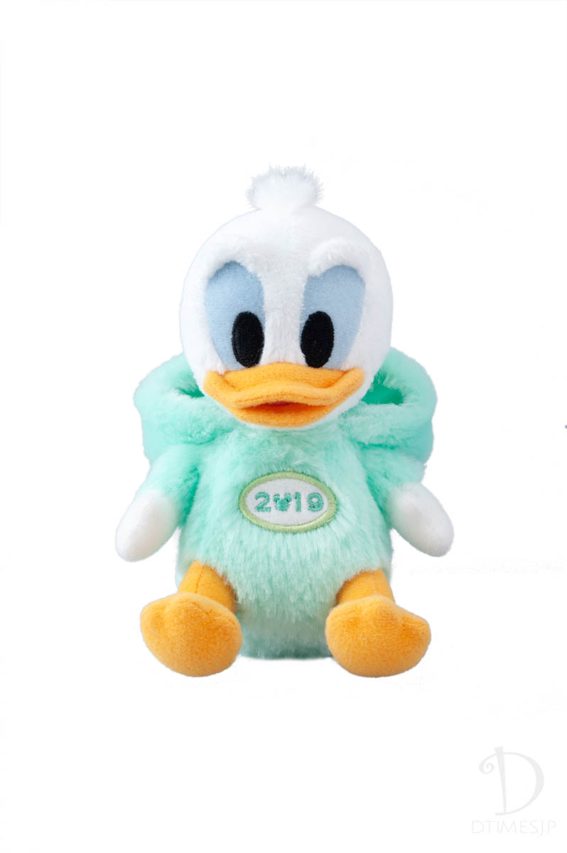 ドナルドダックの干支ぬいぐるみはミントグリーンのコスチューム。