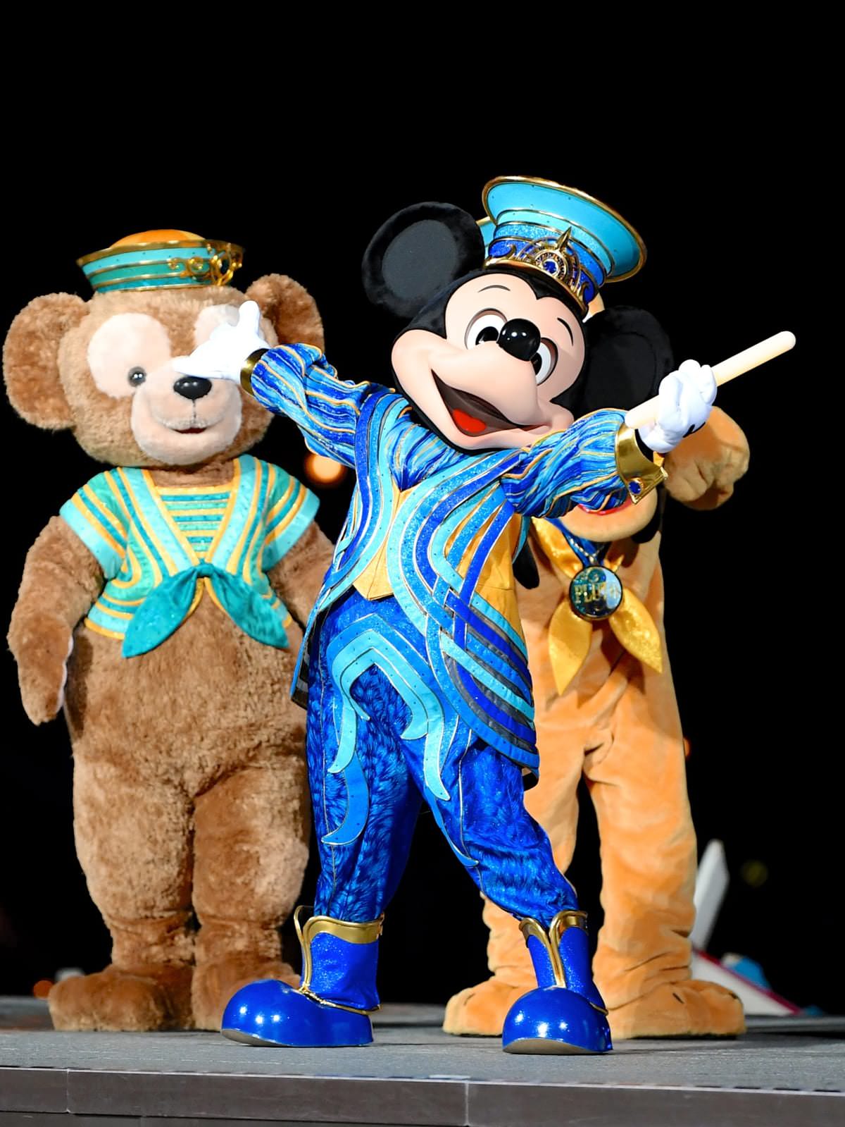 ミッキーマウス、ミニーマウス、プルート、ダッフィー、シェリーメイがやってきます。