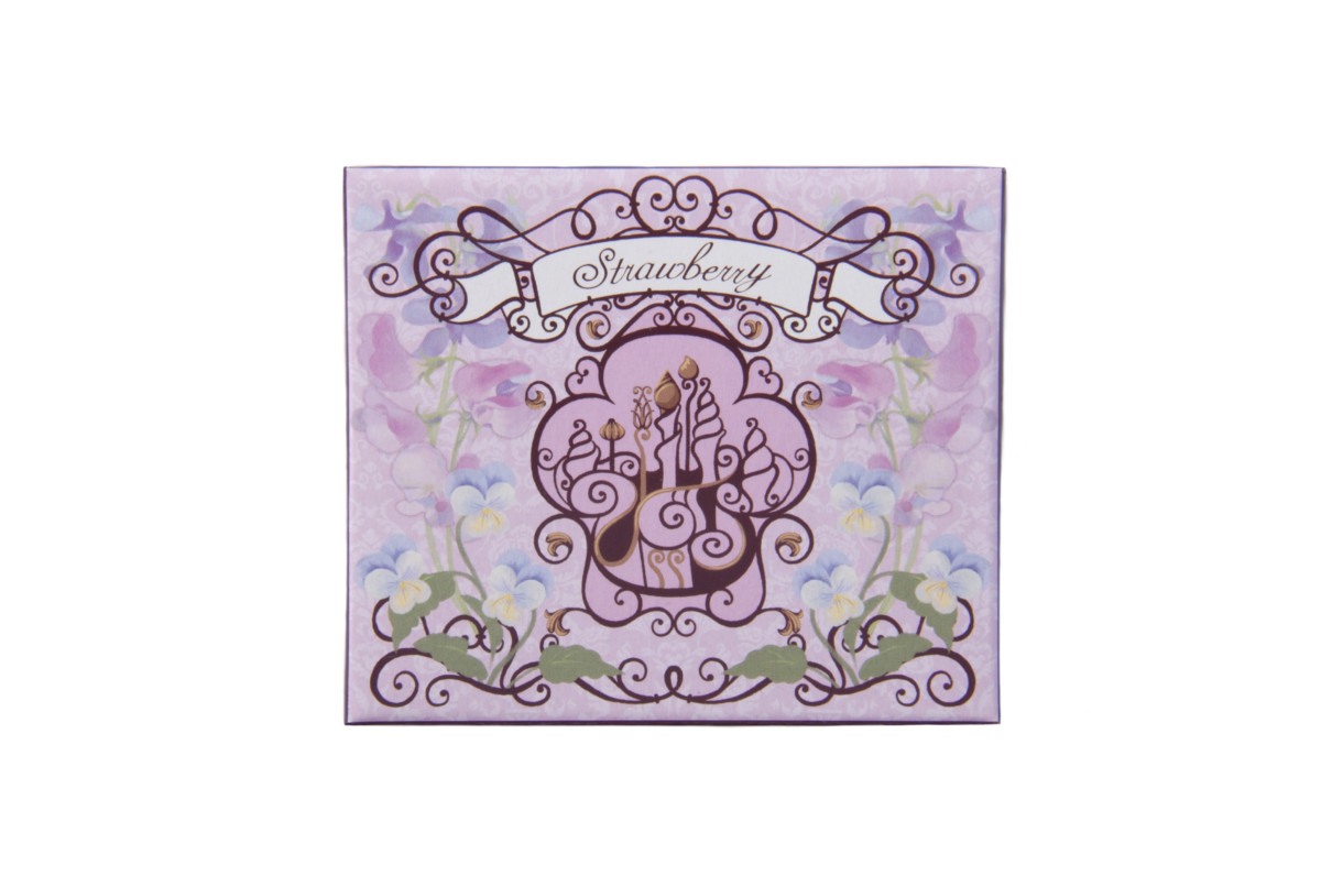 ミルクチョコレートに、ハート形のストロベリーチョコレートと甘酸っぱい苺のフレークをトッピング。
