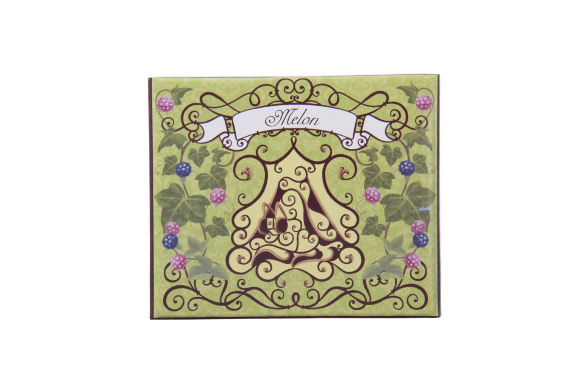 メロンチョコレートに、 ホワイトチョコレートでマーブル模様を描いたチョコレート。