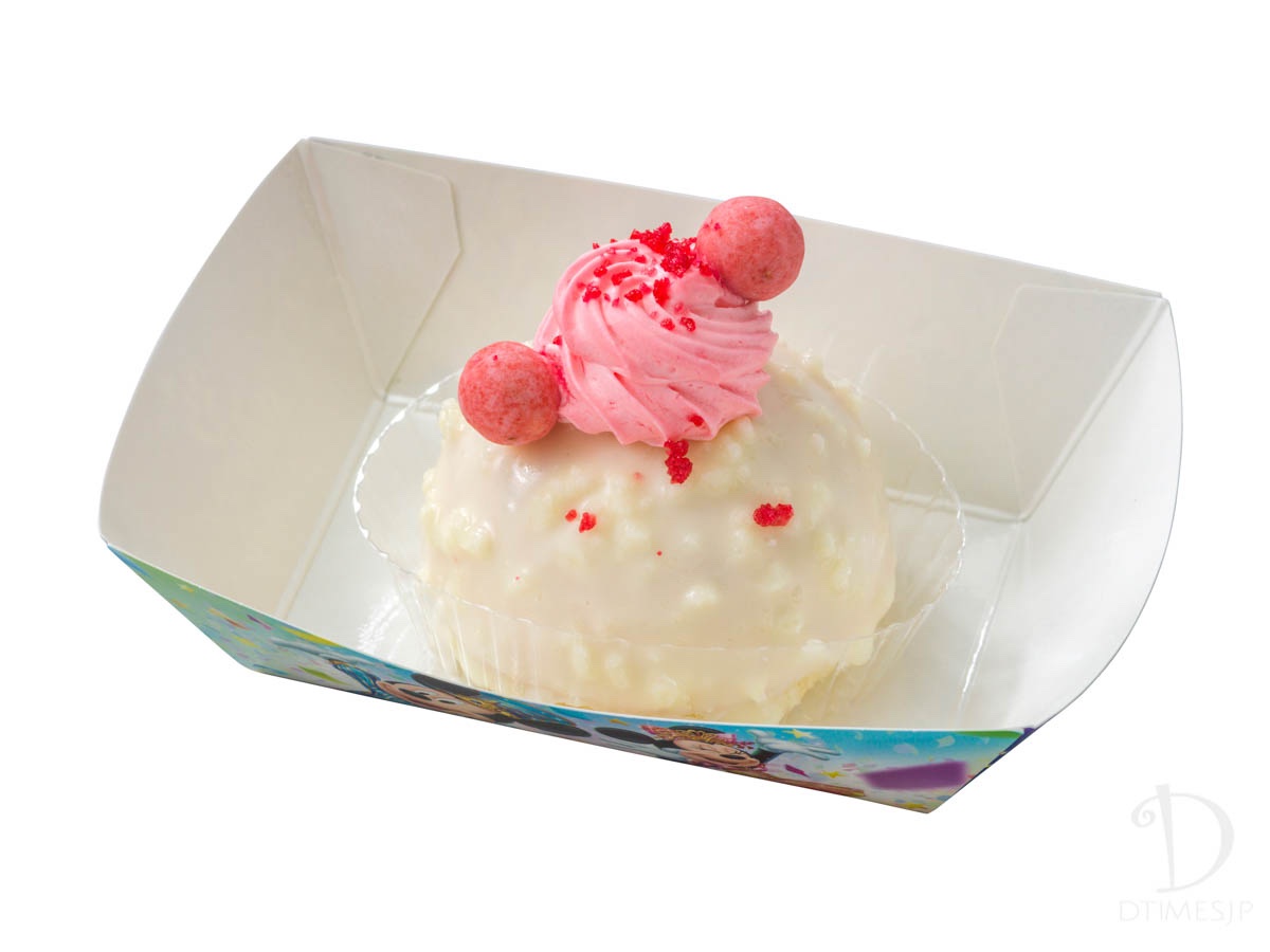 ホワイトチョコでコーティングされたドーム型のケーキ。