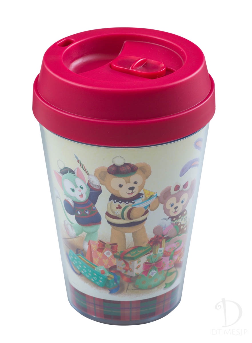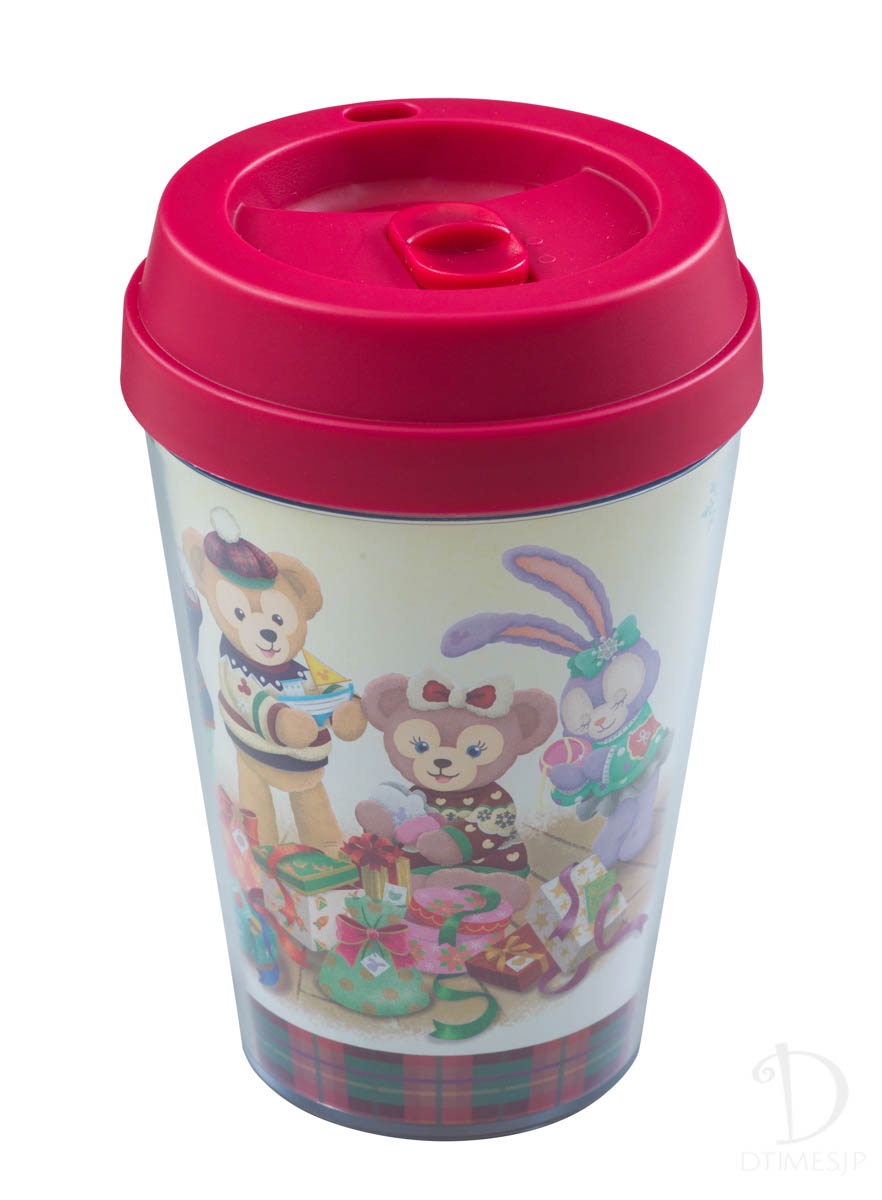 クリスマスの朝のダッフィー&フレンズを描いたスーベニアドリンクカップ。
