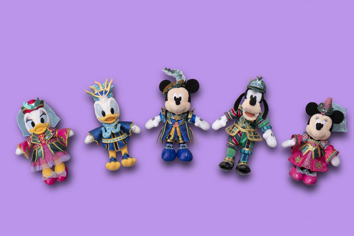 そのほかにも、「フェスティバル・オブ・ミスティーク」のコスチュームに身を包んだ「ミッキーマウス」「ミニーマウス」「ドナルドダック」「デイジーダック」「グーフィー」のぬいぐるみバッジなどが登場します。
