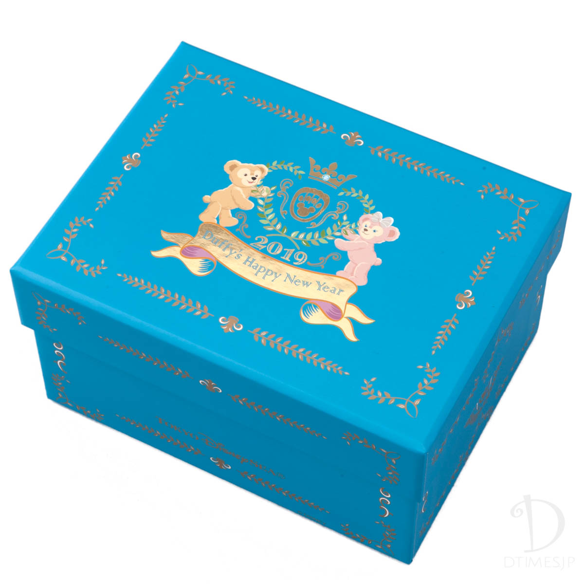 ダッフィーとシェリーメイがデザインされたオシャレなターコイズのボックス。