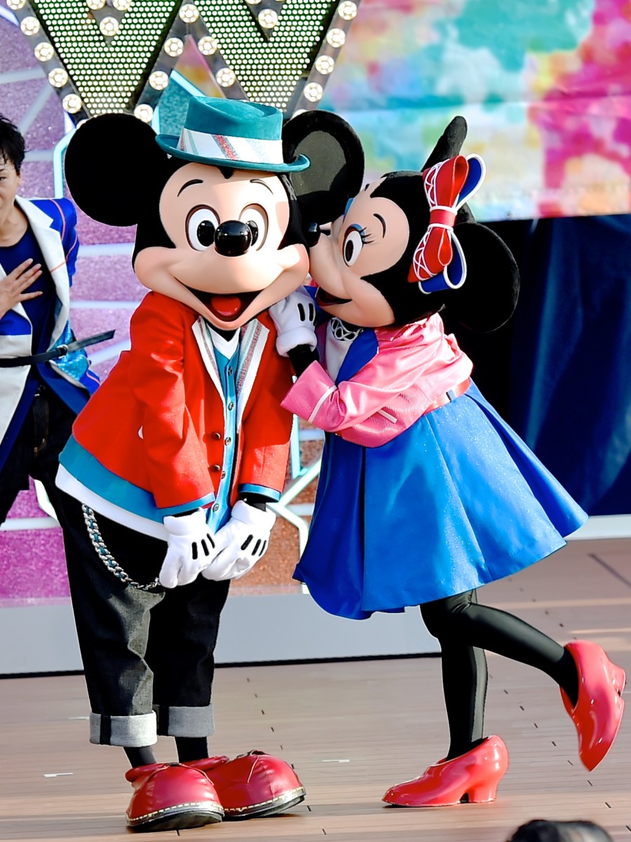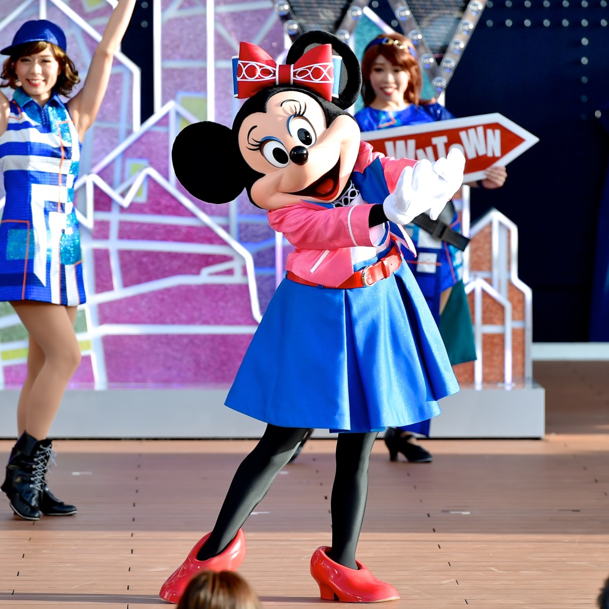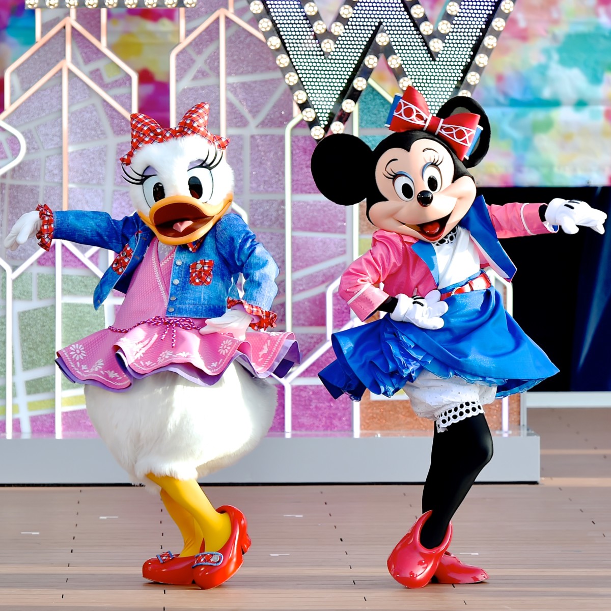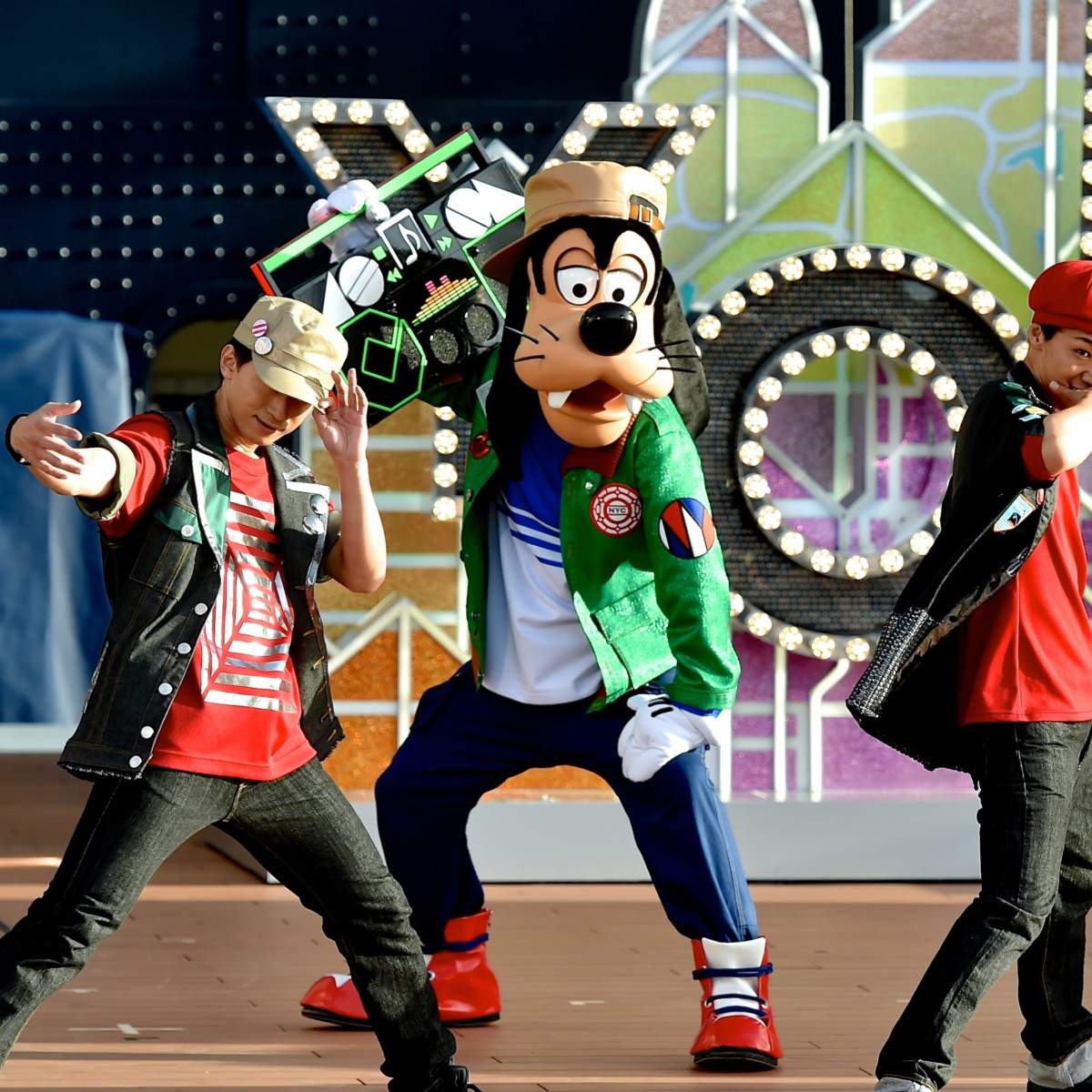 ダンサーたちはミッキーマウスとミニーマウスをダンスに誘い、最後はみんなで格好良くポーズ!