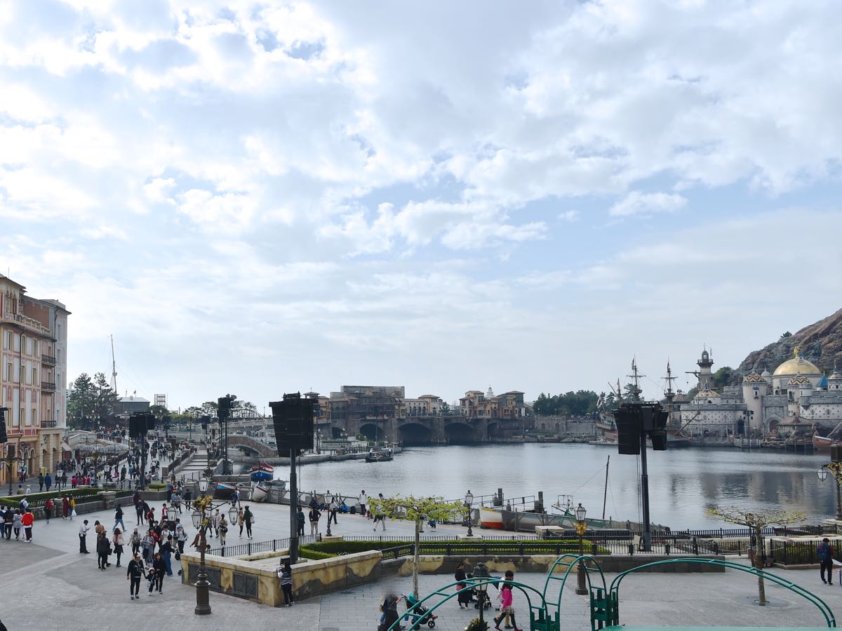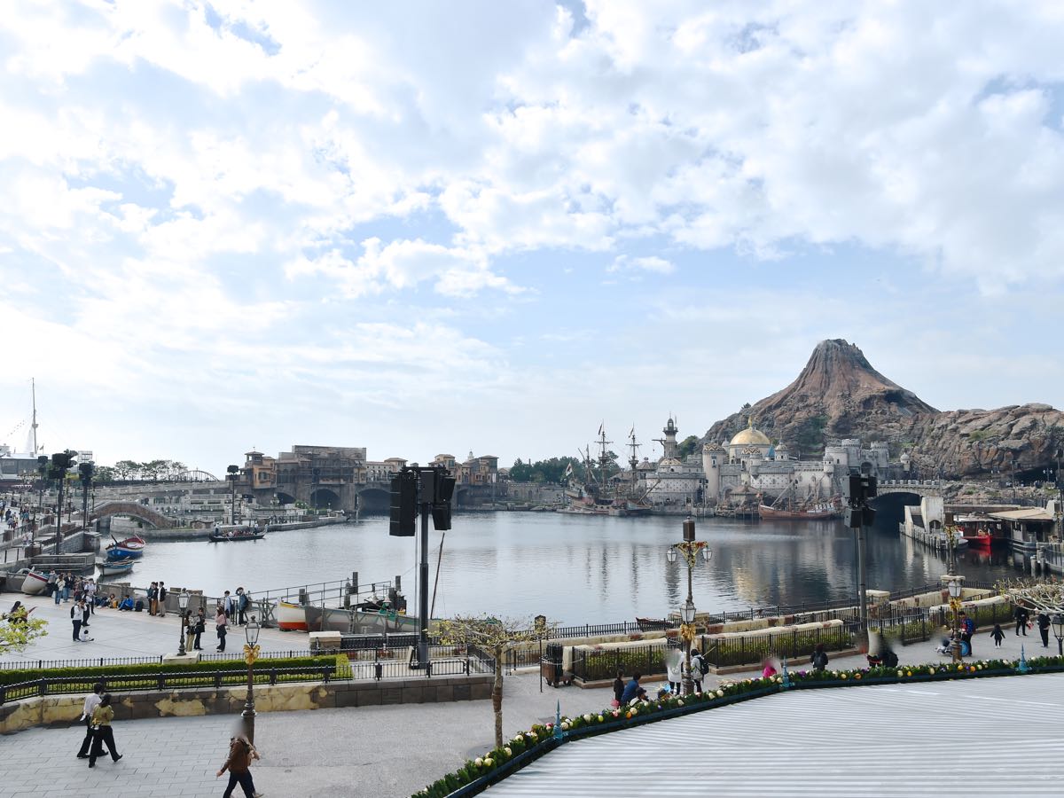 東京ディズニーシーの美しい景色を見渡すことができる、眺めの良いテラス。
