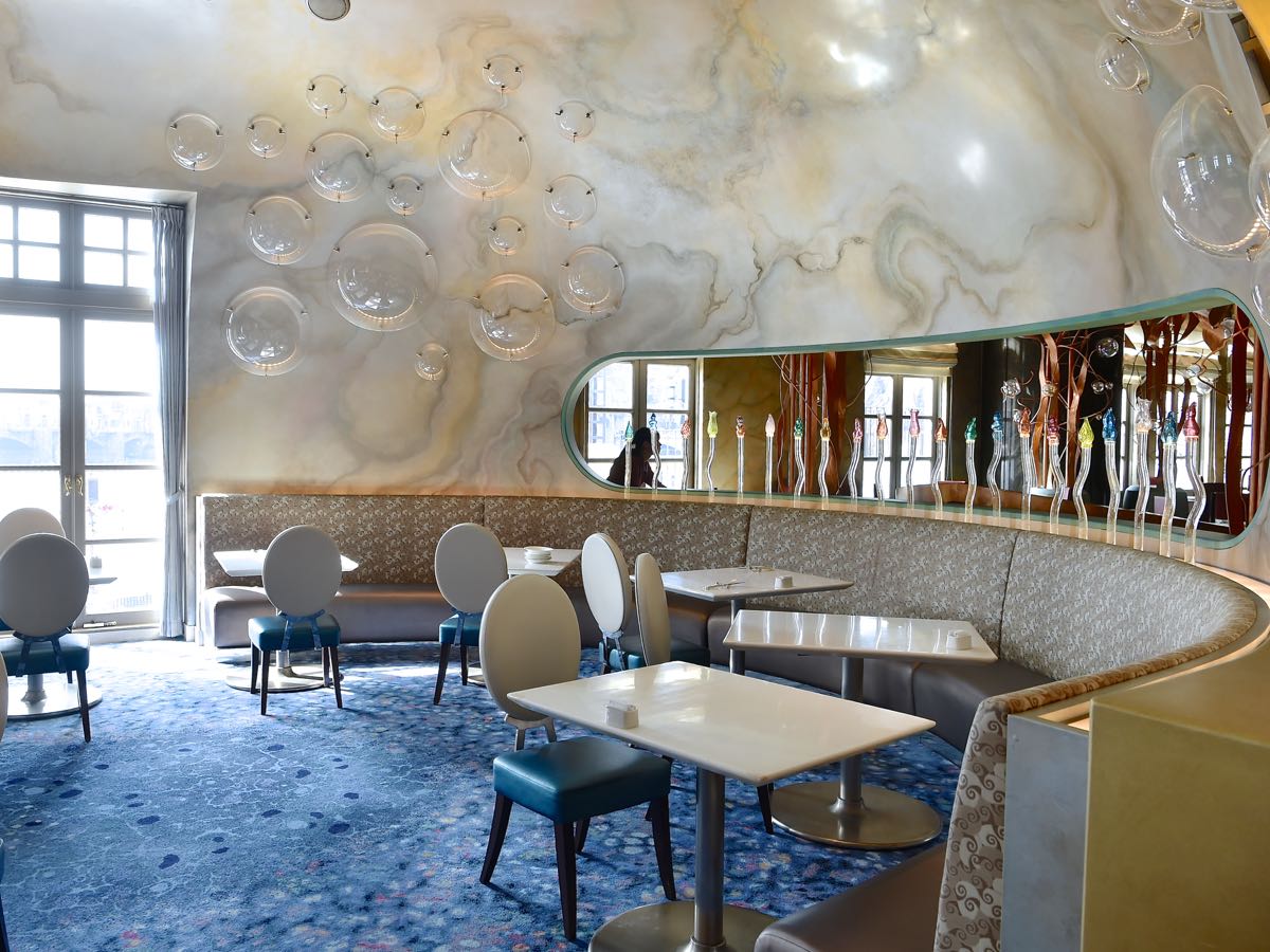 店内は貝や真珠などをイメージした3つの美しい海の世界が広がり、また、「ショー鑑賞テラス」からは東京ディズニーシーのハーバーショーを観ることも!