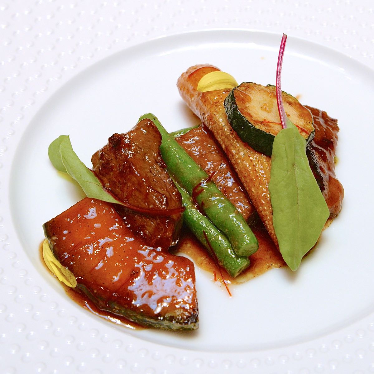 メインディッシュは「牛フィレ肉と季節の野菜のスパイシー醤油ソース炒め」