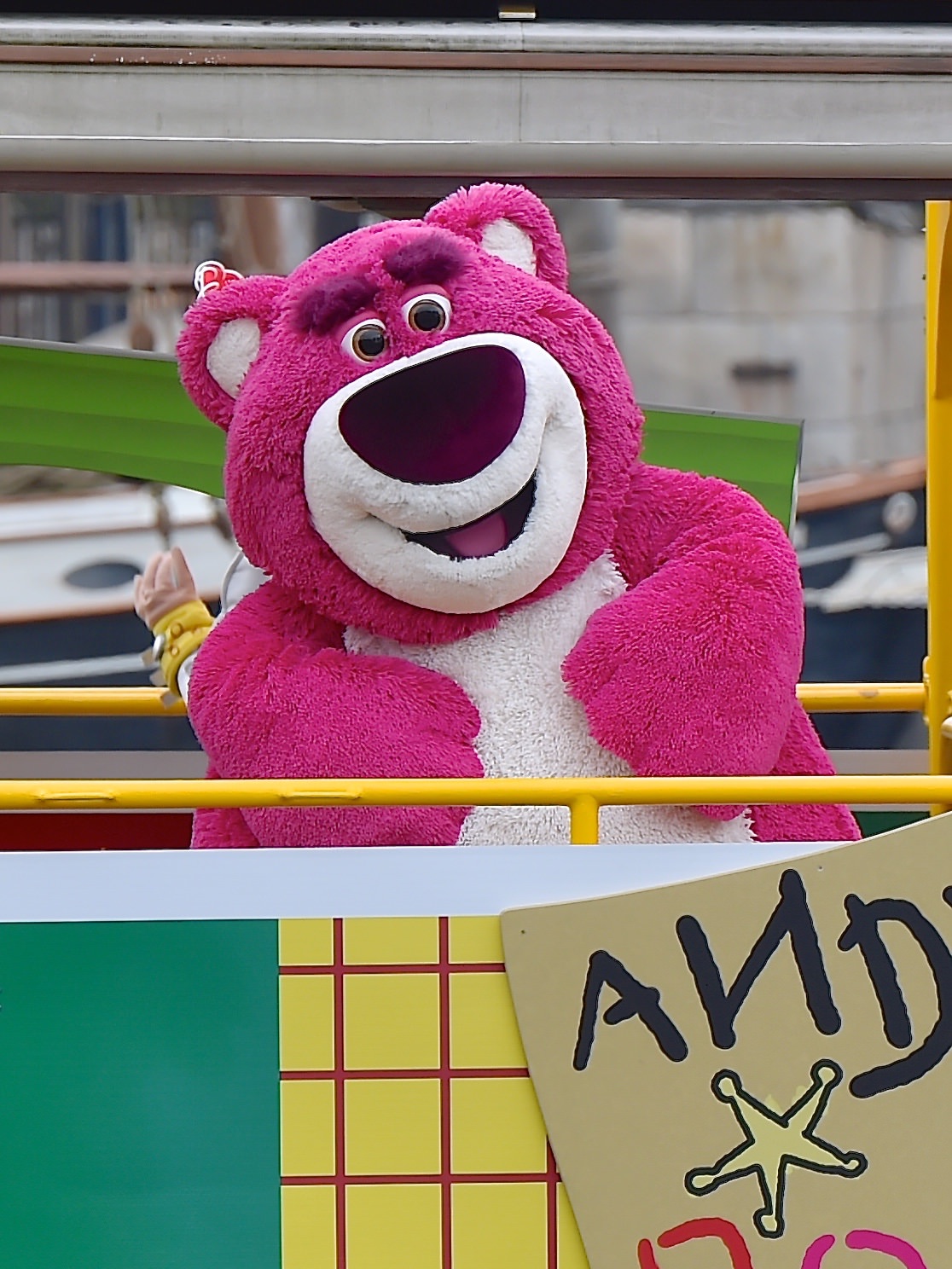 『トイ・ストーリー3』に登場するロッツォ・ハグベアがゲストに向かって元気よくご挨拶☆