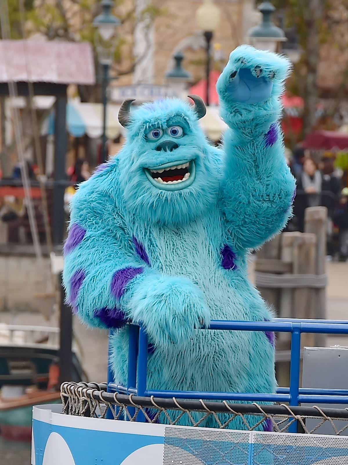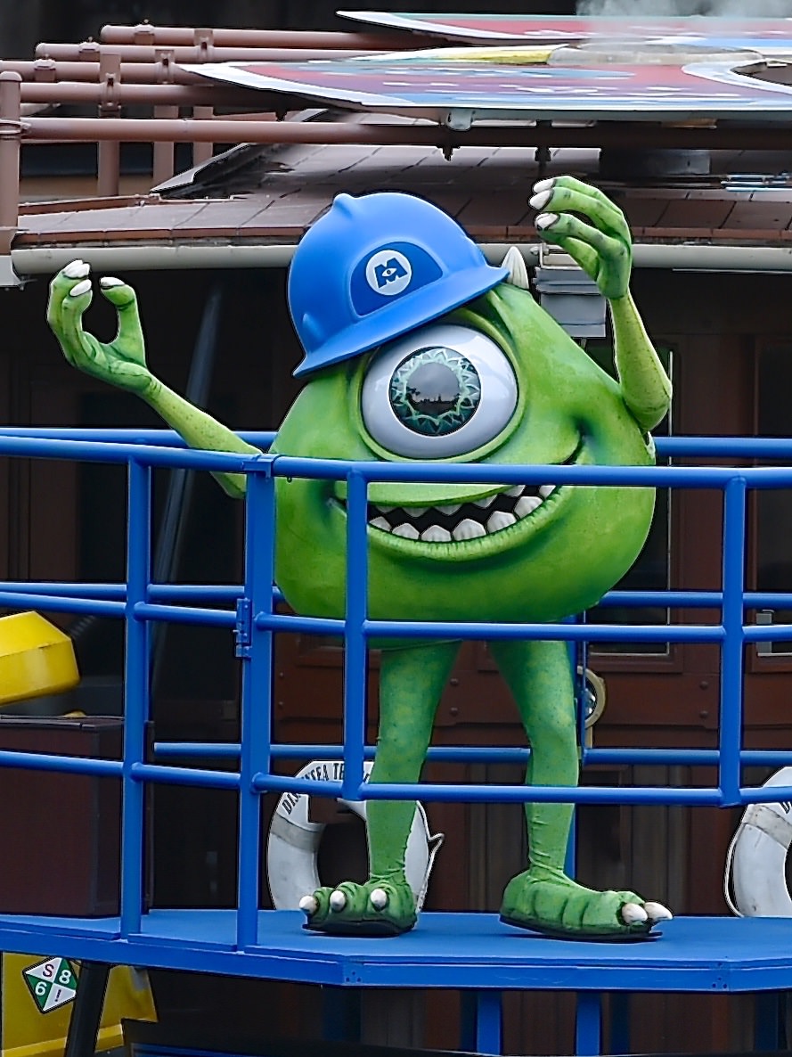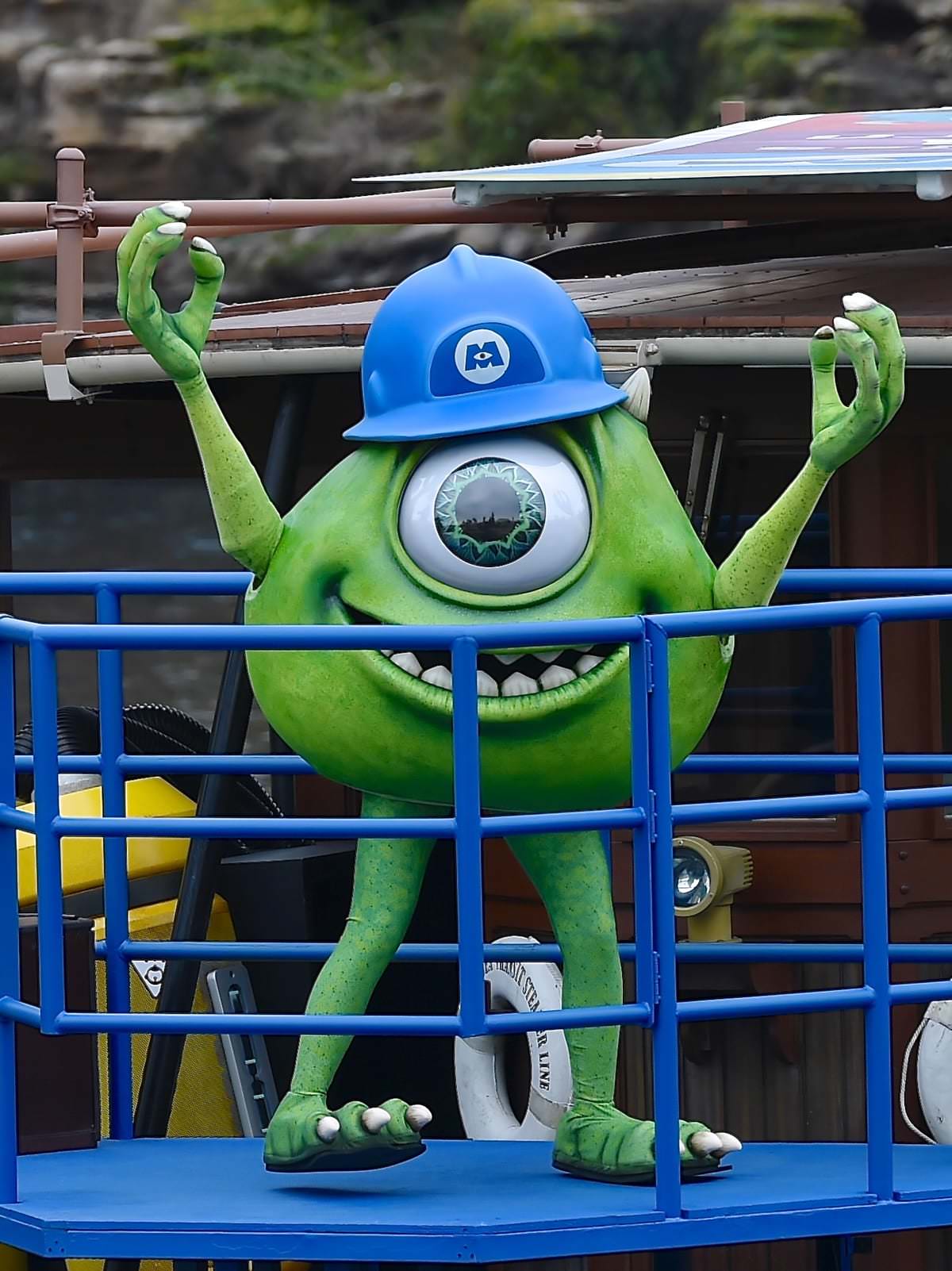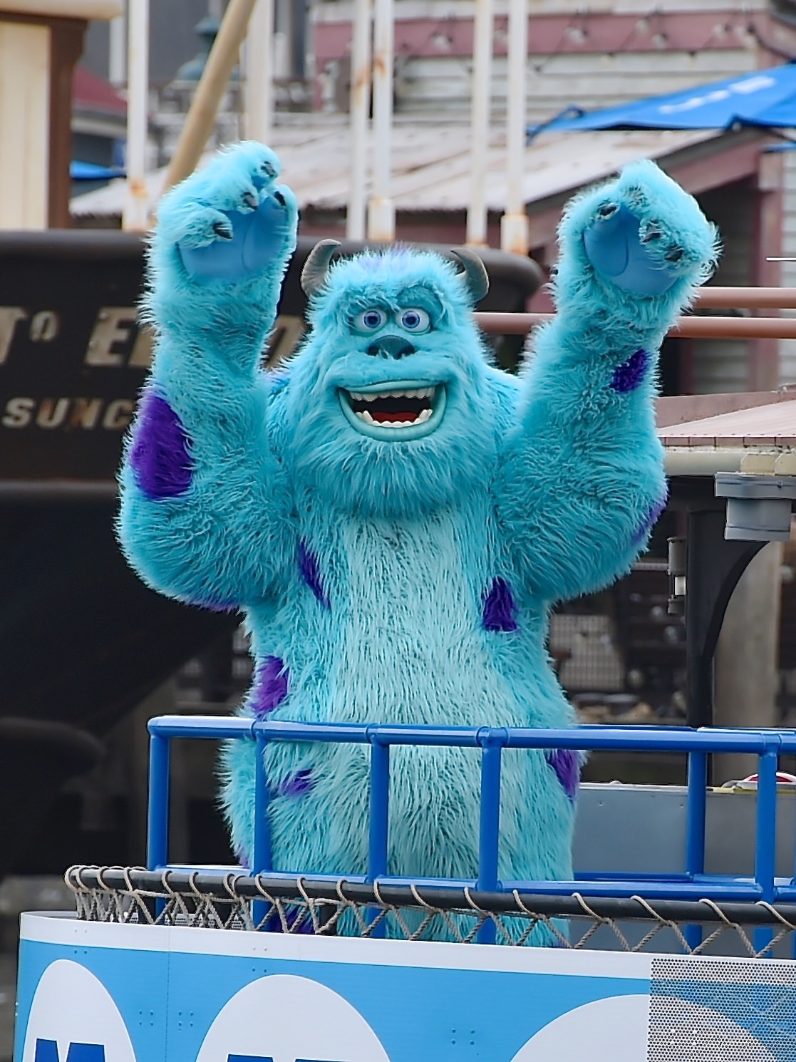 青いトランジットスチーマーライン(船)で登場する『モンスターズ・インク』シリーズの仲間たち。